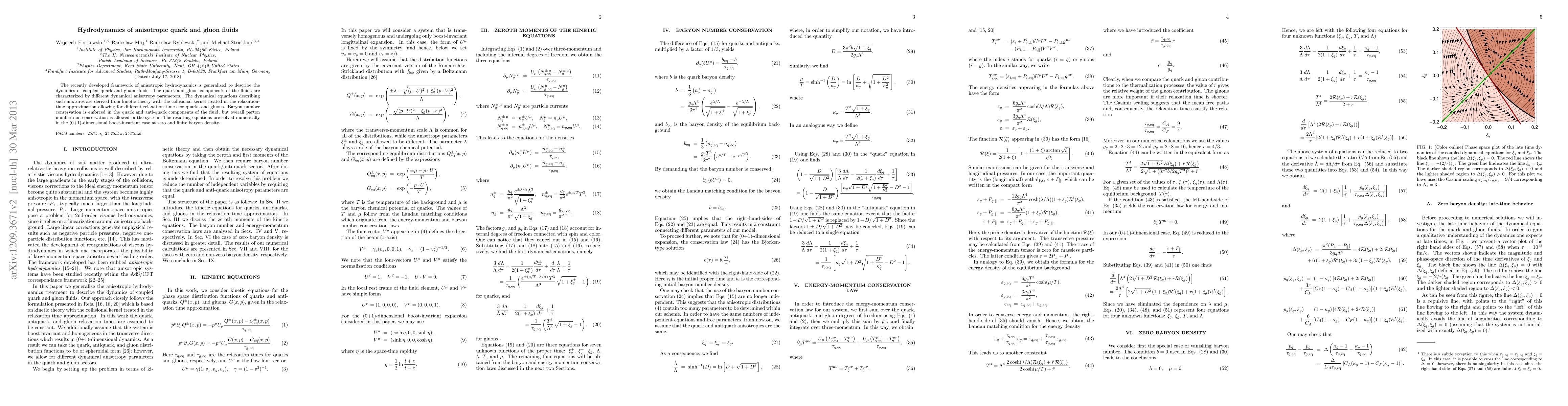This paper generalizes anisotropic hydrodynamics to model quark and gluon fluids, deriving equations from kinetic theory that account for different relaxation times and anisotropies. Numerical solutions for boost-invariant scenarios at zero and finite baryon density are presented, highlighting parton number non-conservation.