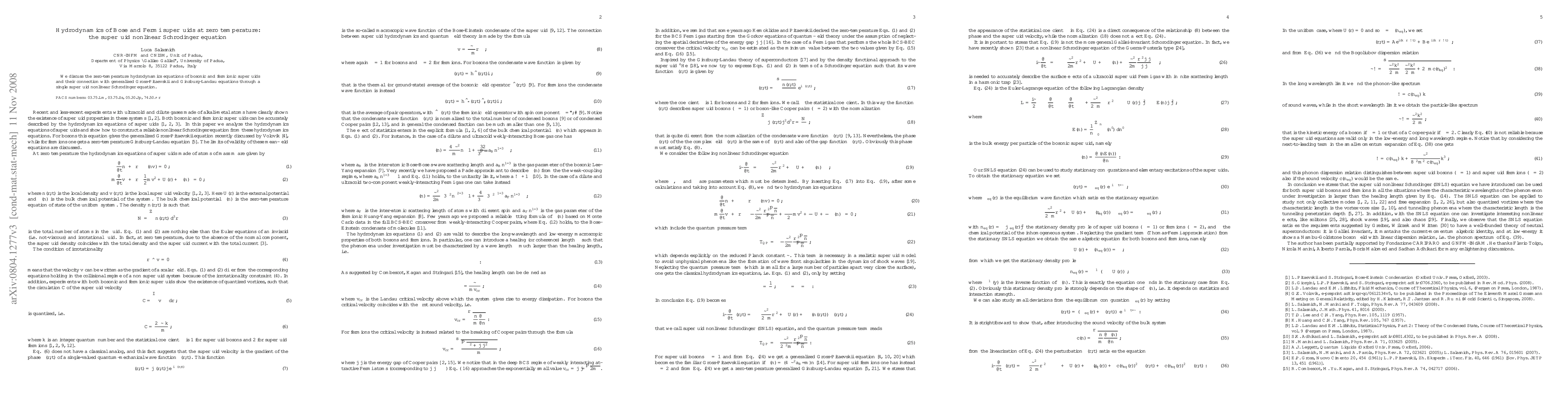 This paper explores the hydrodynamics of zero-temperature Bose and Fermi superfluids, linking their behavior to a unified superfluid nonlinear Schrödinger equation, which connects to the generalized Gross-Pitaevskii and Ginzburg-Landau equations.