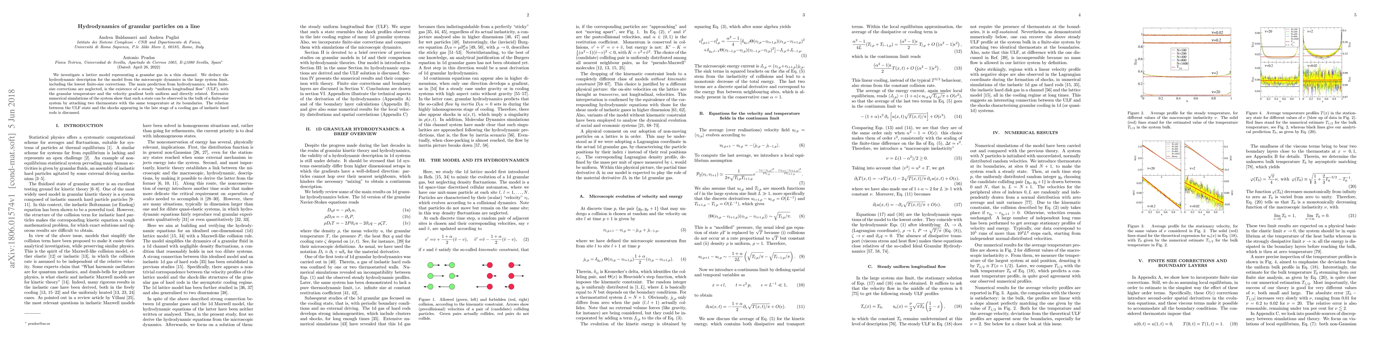 This paper explores a lattice model for granular gas in a thin channel, deriving hydrodynamic behavior from microscopic dynamics. It predicts a steady "uniform longitudinal flow" (ULF) state, confirmed by numerical simulations, and discusses its relation to shocks in cooling gases.