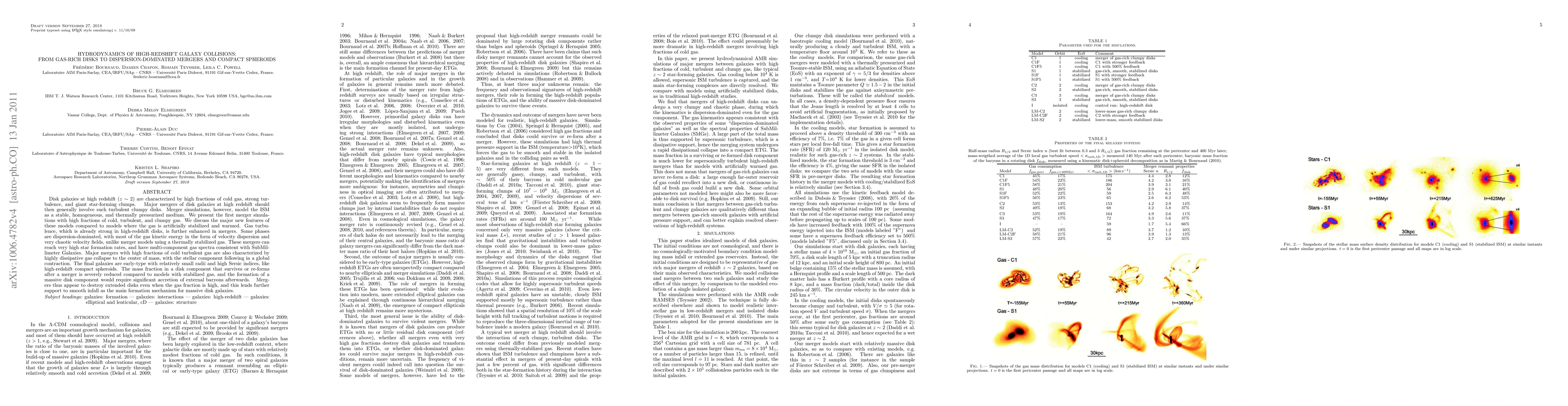 This paper explores the hydrodynamics of high-redshift galaxy collisions, focusing on mergers involving gas-rich, turbulent disks. The simulations reveal that such mergers enhance gas turbulence and lead to dispersion-dominated phases, resulting in compact, early-type galaxies with minimal surviving disk material.
