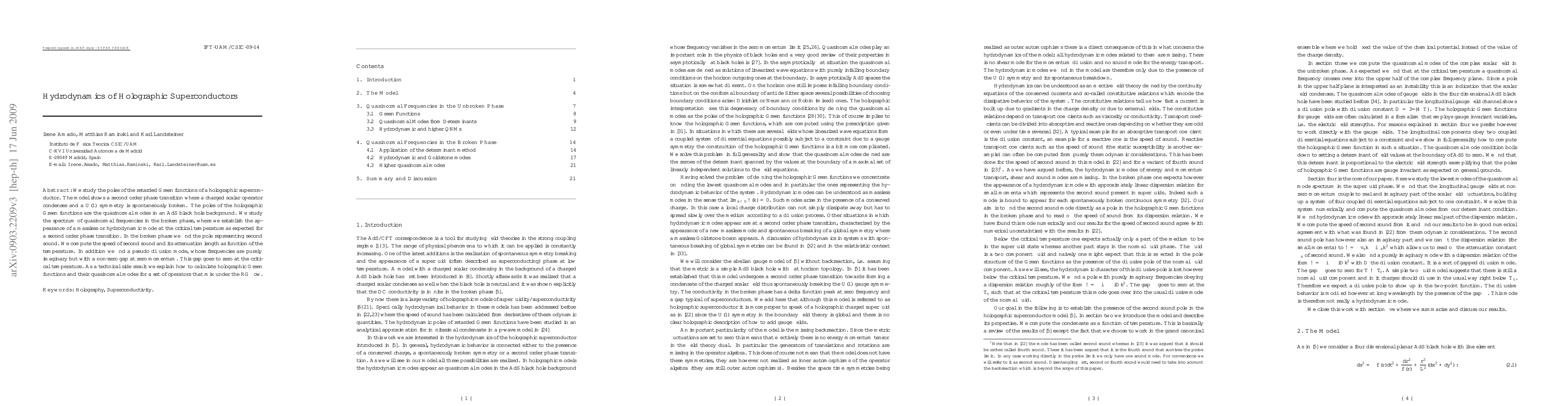 Research reveals a second-order phase transition in holographic superconductors, where a charged scalar operator condenses and breaks U(1) symmetry, giving rise to a massless hydrodynamic mode known as 'second sound' with a calculable speed and attenuation length.