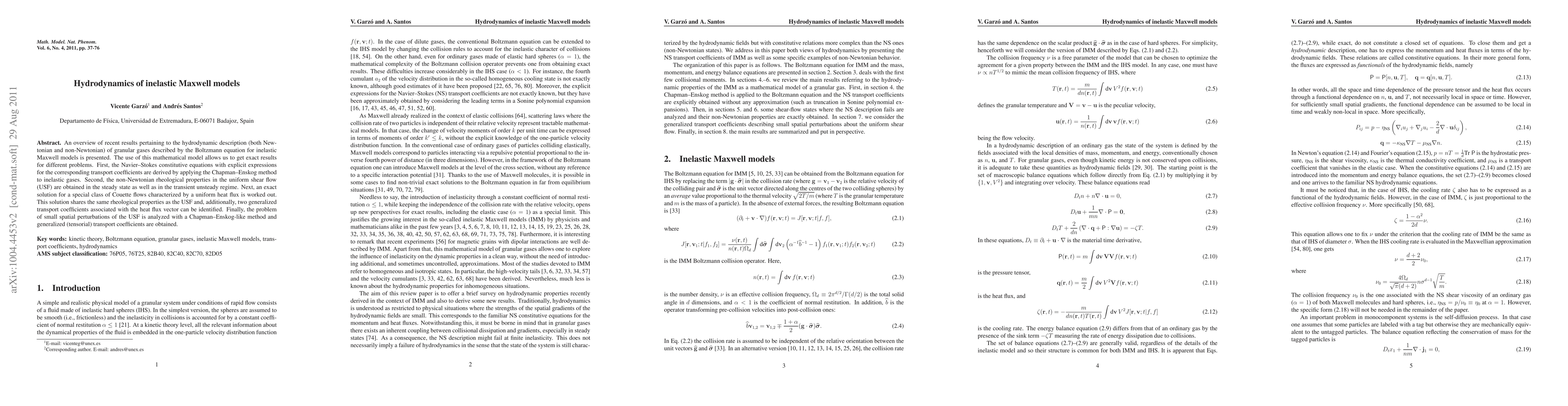 This paper presents recent findings on the hydrodynamic description of granular gases modeled by the inelastic Maxwell model, focusing on deriving Navier-Stokes equations and exploring non-Newtonian rheological properties in both steady and unsteady shear flows, including exact solutions for specific Couette flows with uniform heat flux.