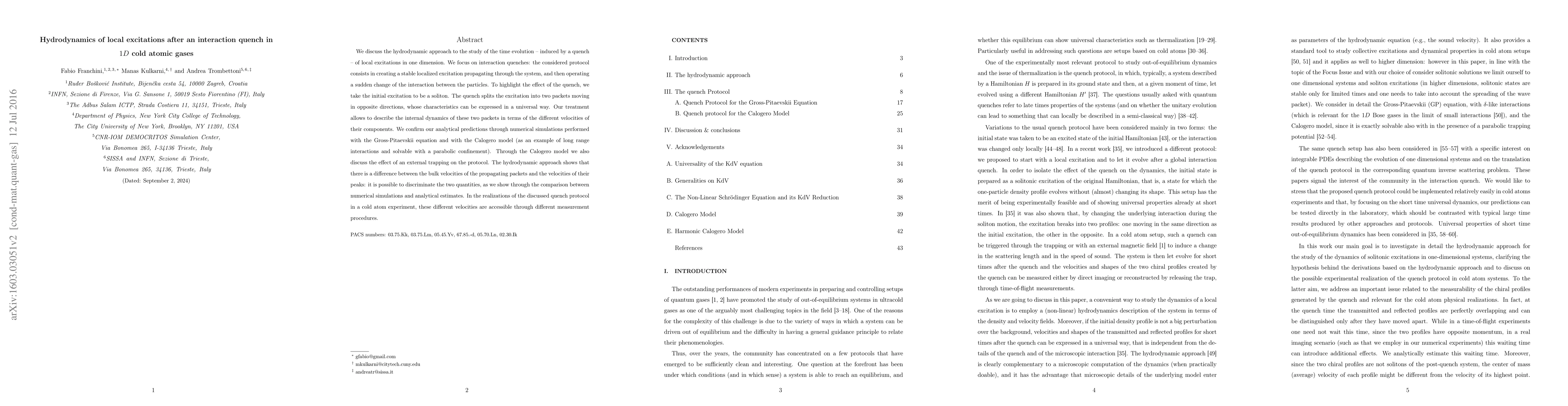 A study on 1D cold atomic gases reveals that a sudden change in interaction between particles after creating a localized excitation splits the excitation into two packets with distinct velocities.