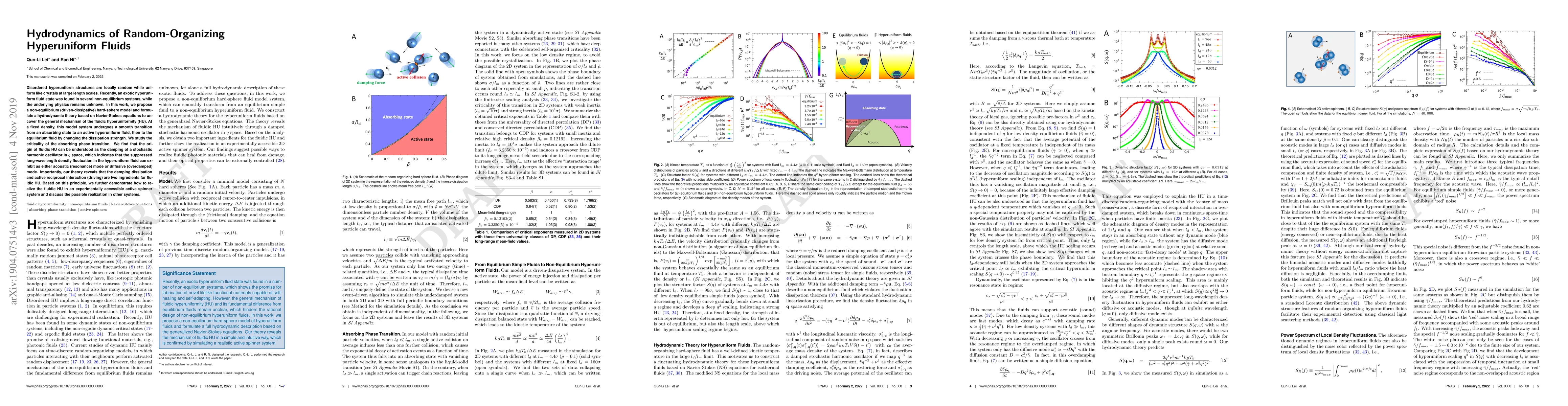 This paper proposes a hydrodynamic theory for hyperuniform fluid states in non-equilibrium systems, revealing that damping dissipation and active reciprocal interaction are key to achieving this state. The study uses a driven-dissipative hard-sphere model to demonstrate the transition from an absorbing state to a hyperuniform fluid, highlighting the criticality of the phase transition.