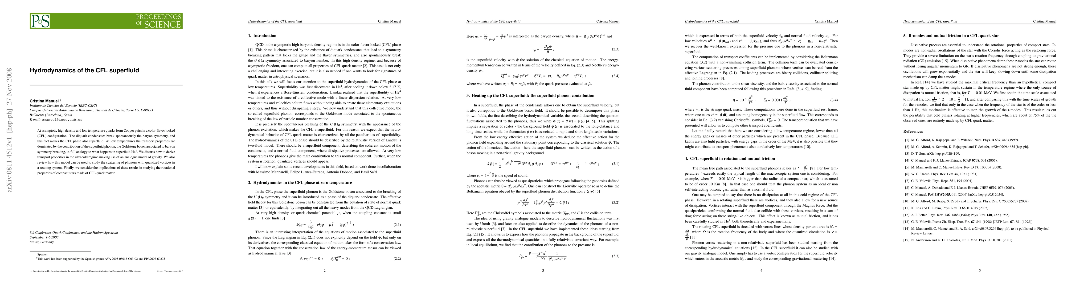 At asymptotic high density and low temperature quarks form Cooper pairs in a color-flavor locked (CFL) configuration. The diquark condensates break spontaneously the baryon symmetry, and this fact makes the CFL phase also superfluid. At low temperatures the transport properties are dominated by the contribution of the superfluid phonon, the Goldstone boson associated to baryon symmetry breaking, in full analogy to what happens in superfluid He4. We discuss how to derive transport properties in the ultracold regime making use of an analogue model of gravity. We also review how this model can be used to study the scattering of phonons with quantized vortices in a rotating system. Finally, we consider the implications of these results in studying the rotational properties of compact stars made of CFL quark matter