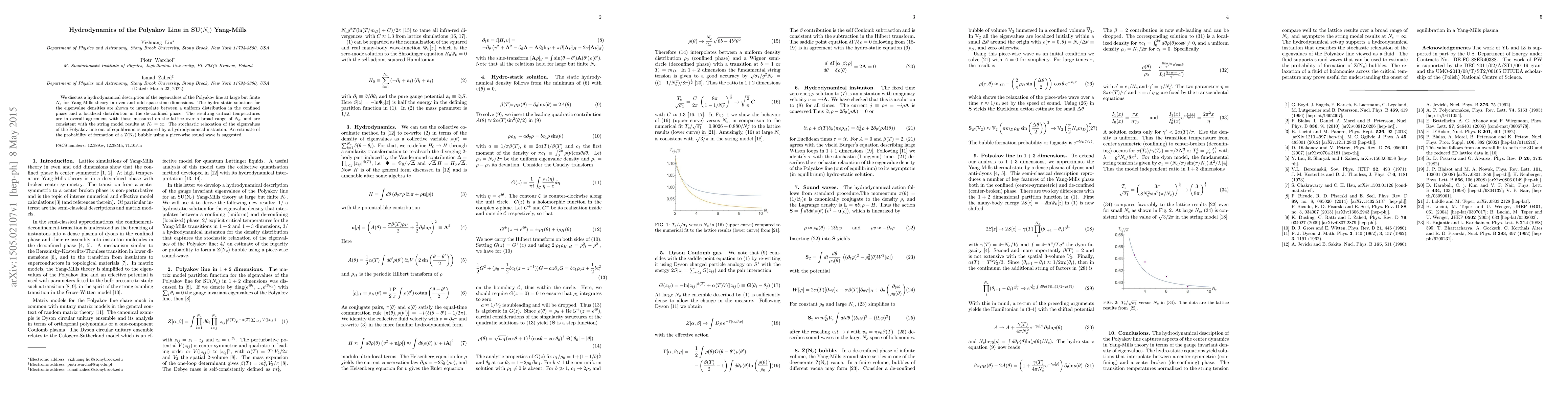 We discuss a hydrodynamical description of the eigenvalues of the Polyakov line at large but finite $N_c$ for Yang-Mills theory in even and odd space-time dimensions. The hydro-static solutions for the eigenvalue densities are shown to interpolate between a uniform distribution in the confined phase and a localized distribution in the de-confined phase. The resulting critical temperatures are in overall agreement with those measured on the lattice over a broad range of $N_c$, and are consistent with the string model results at $N_c=\infty$. The stochastic relaxation of the eigenvalues of the Polyakov line out of equilibrium is captured by a hydrodynamical instanton. An estimate of the probability of formation of a Z(N$_c)$ bubble using a piece-wise sound wave is suggested.