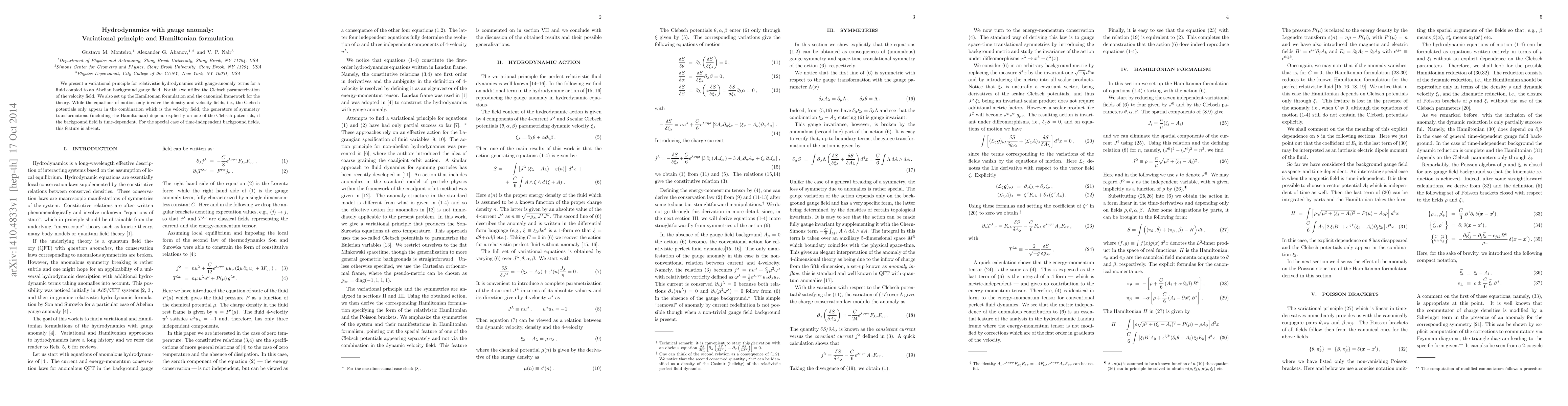 This paper develops a variational principle and Hamiltonian formulation for relativistic hydrodynamics incorporating gauge-anomaly terms in a fluid-gauge field system. It employs Clebsch parametrization and highlights that the Hamiltonian depends on a Clebsch potential when the background field varies with time.