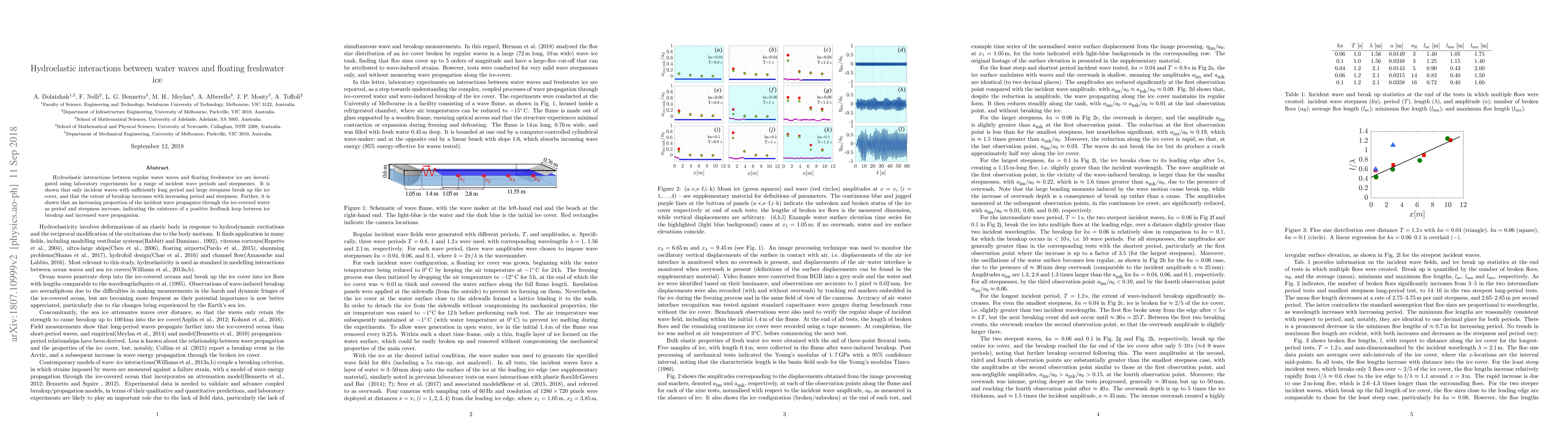 This study investigates how hydroelastic interactions affect the breakup of freshwater ice under regular water waves, revealing that longer wave periods and higher steepness lead to increased ice breakup and wave propagation, suggesting a positive feedback loop.