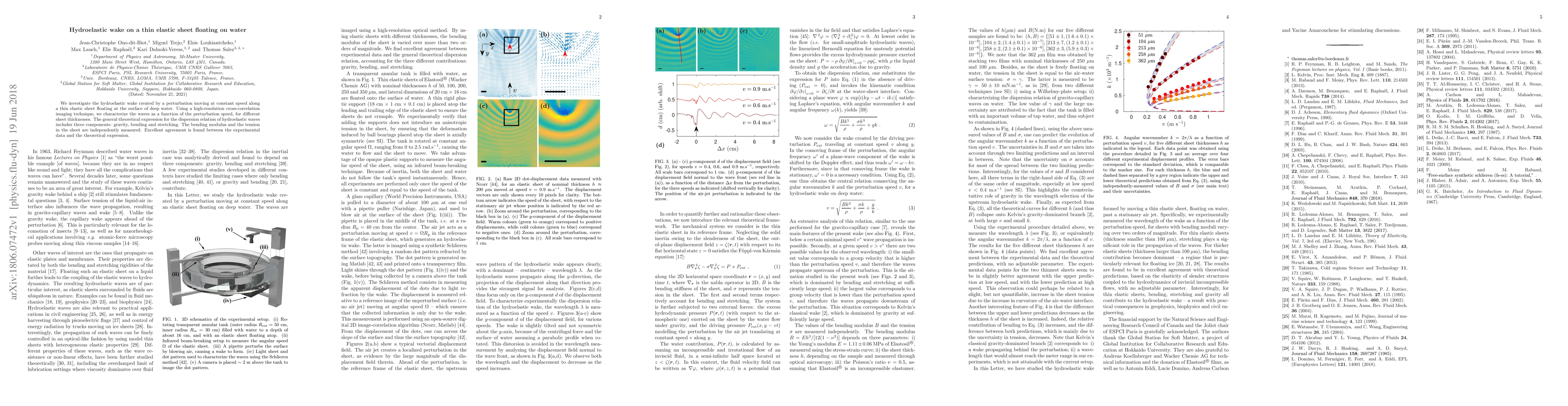 The study characterizes hydroelastic waves on a thin elastic sheet floating on water, showing wave patterns dependent on perturbation speed and sheet thickness, with theoretical modeling confirming experimental findings through dispersion relation analysis.