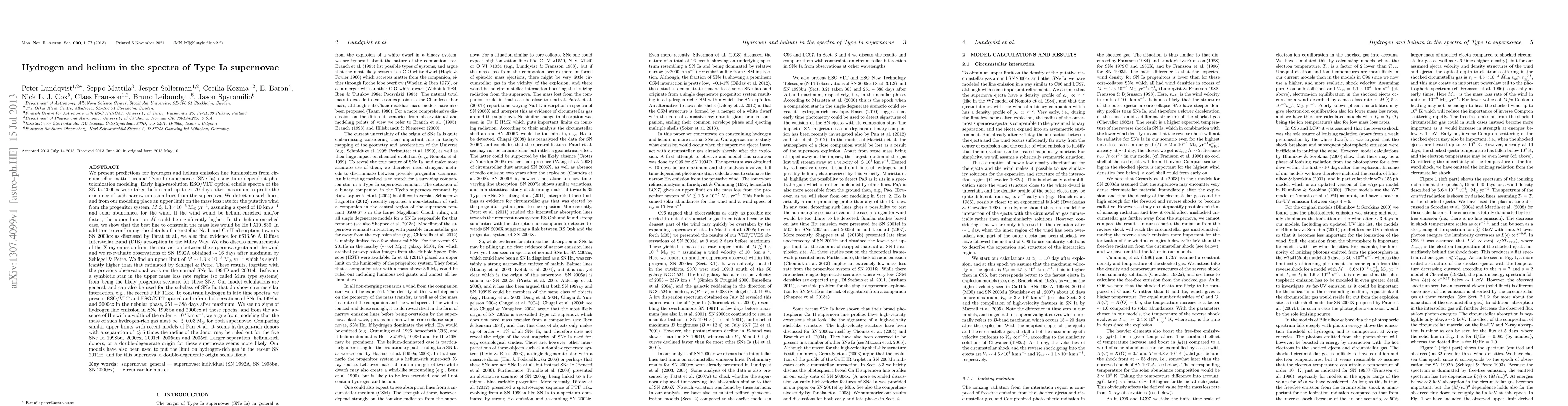 We present predictions for hydrogen and helium emission line luminosities from circumstellar matter around Type Ia supernovae (SNe Ia) using time dependent photoionization modeling. ESO/VLT optical echelle spectra of the SN Ia 2000cx were taken before and up to 70 days after maximum. We detect no hydrogen and helium lines, and place an upper limit on the mass loss rate for the putative wind of less than 1.3EE{-5} solar masses per year, assuming a speed of 10 km/s and solar abundances for the wind. In a helium-enriched case, the best line to constrain the mass loss would be He I 10,830 A. We confirm the details of interstellar Na I and Ca II absorption towards SN 2000cx as discussed by Patat et al., but also find evidence for 6613.56 A Diffuse Interstellar Band (DIB) absorption in the Milky Way. We discuss measurements of the X-ray emission from the interaction between the supernova ejecta and the wind and we re-evaluate observations of SN 1992A obtained 16 days after maximum by Schlegel & Petre. We find an upper limit of 1.3EE{-5} solar masses per year. These results, together with the previous observational work on the normal SNe Ia 1994D and 2001el, disfavour a symbiotic star in the upper mass loss rate regime from being the likely progenitor scenario for these SNe. To constrain hydrogen in late time spectra, we present ESO/VLT and ESO/NTT optical and infrared observations of SNe Ia 1998bu and 2000cx 251-388 days after maximum. We see no hydrogen line emission in SNe 1998bu and 2000cx at these epochs, and we argue from modeling that the mass of such hydrogen-rich gas must be less than 0.03 solar masses for both supernovae. Comparing similar upper limits with recent models of Pan et al., it seems hydrogen-rich donors with a separation of less than 5 times the radius of the donor may be ruled out for the five SNe Ia 1998bu, 2000cx, 2001el, 2005am and 2005cf.