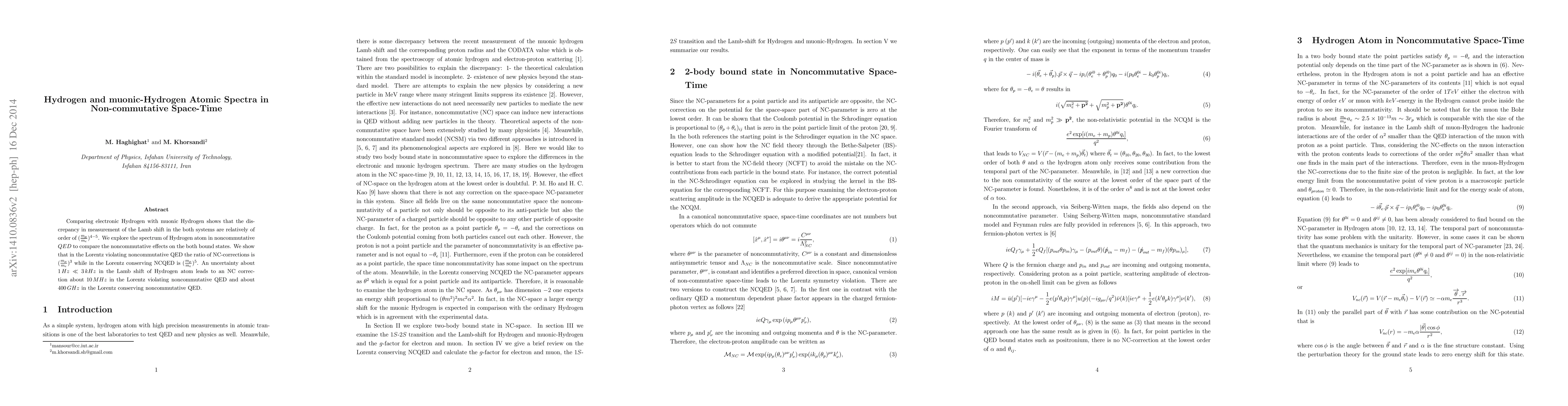 Comparing electronic Hydrogen with muonic Hydrogen shows that the discrepancy in measurement of the Lamb shift in the both systems are relatively of order of $(\frac{m_\mu}{m_e})^{4-5}$. We explore the spectrum of Hydrogen atom in noncommutative $QED$ to compare the noncommutative effects on the both bound states. We show that in the Lorentz violating noncommutative QED the ratio of NC-corrections is $(\frac{m_\mu}{m_e})^3$ while in the Lorentz conserving NCQED is $(\frac{m_\mu}{m_e})^5$. An uncertainty about $1 \,Hz\ll 3\,kHz$ in the Lamb shift of Hydrogen atom leads to an NC correction about $10 \,MHz$ in the Lorentz violating noncommutative QED and about $400 \,GHz$ in the Lorentz conserving noncommutative QED.