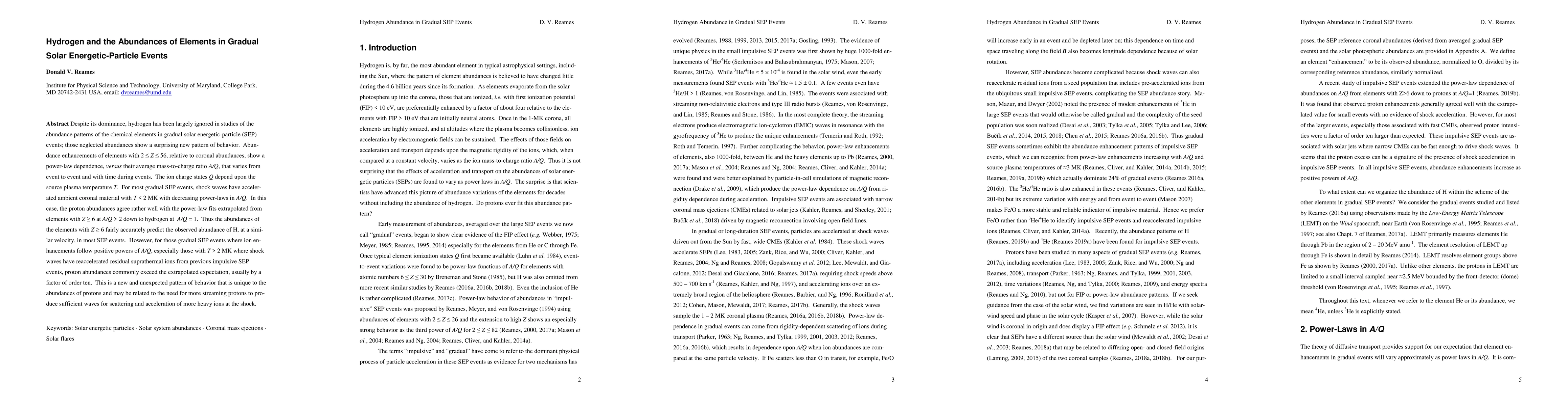 This paper investigates the abundance patterns of elements in gradual solar energetic-particle events, revealing that hydrogen's abundance shows a unique pattern. For most events, the abundance of hydrogen aligns well with heavier elements, but in events with higher temperatures, proton abundances significantly exceed expectations, suggesting a need for more streaming protons to accelerate heavier ions.