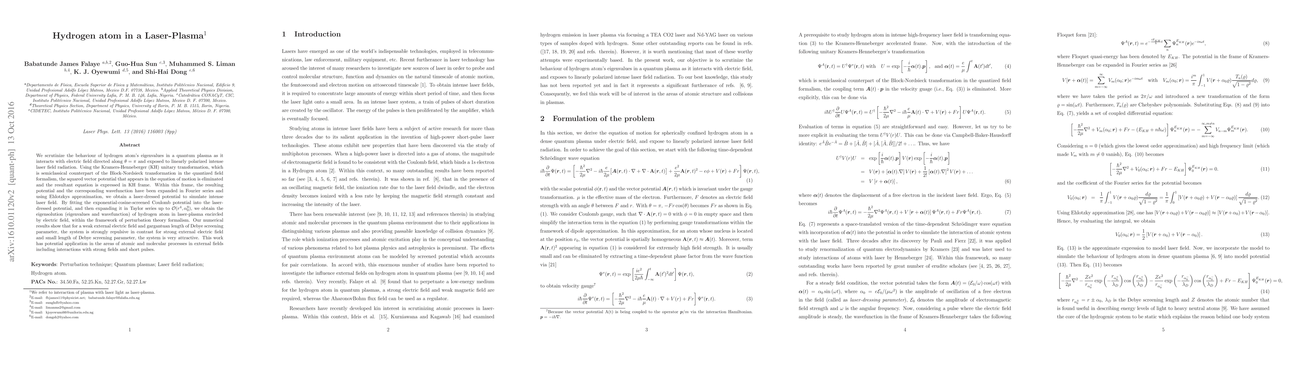 This paper investigates the eigenvalues and wavefunctions of hydrogen atoms in a quantum plasma under intense laser fields and an electric field, using the Kramers-Henneberger transformation and perturbation theory. The study reveals that the interaction dynamics shift from repulsive to attractive as the external electric field strength and Debye screening length vary.