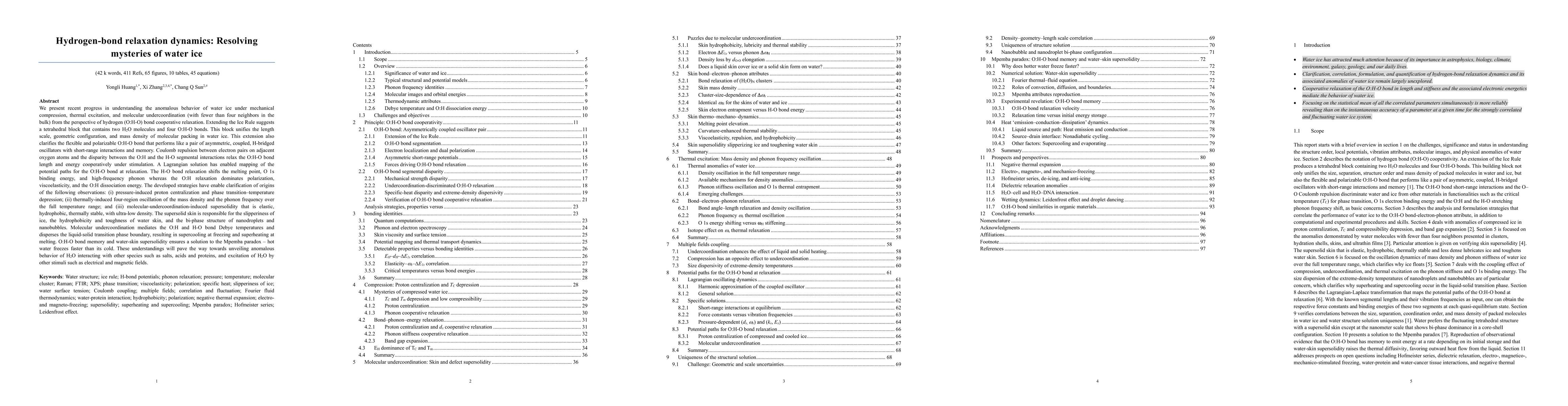 We examined O:H-O bond relaxation under compression,heating,molecular undercoordination and claimed a universal resolution to the best-known mysteries of water ice such as ice foating, ice slipperiness, relegation and warm water cools faster. progress shows that O:H-O bond segmental disparity and O-O repulsivity form the soul dictating the extraordinary adaptivity, cooperativity, recoverability, and sensitivity of water and ice.