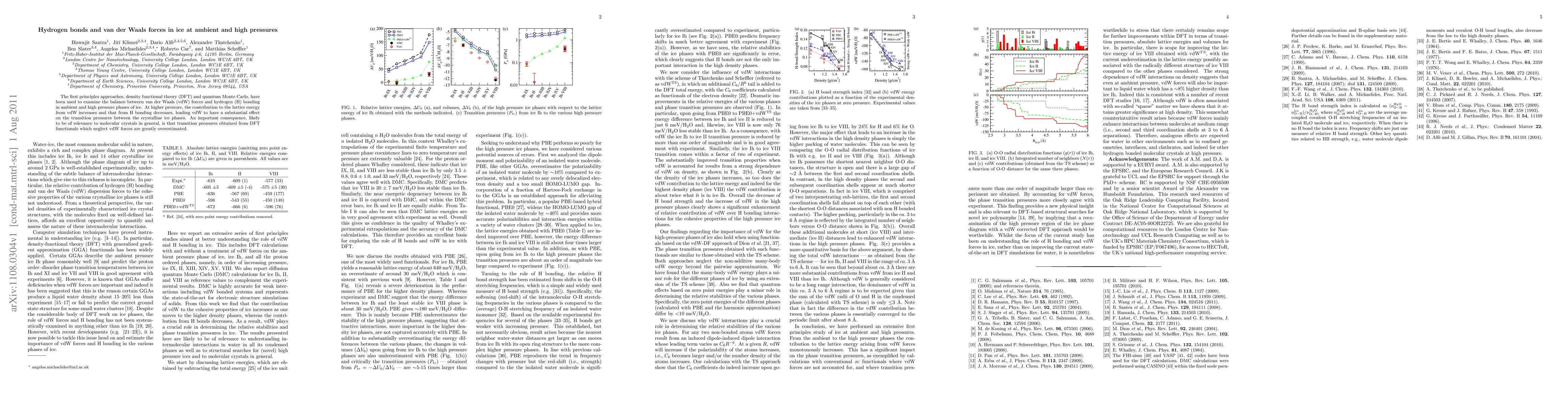 This paper uses density functional theory and quantum Monte Carlo to study the interplay between van der Waals forces and hydrogen bonding in ice under various pressures. It finds that at higher pressures, van der Waals forces become more significant, affecting transition pressures between ice phases, and warns that DFT methods neglecting these forces overestimate transition pressures.