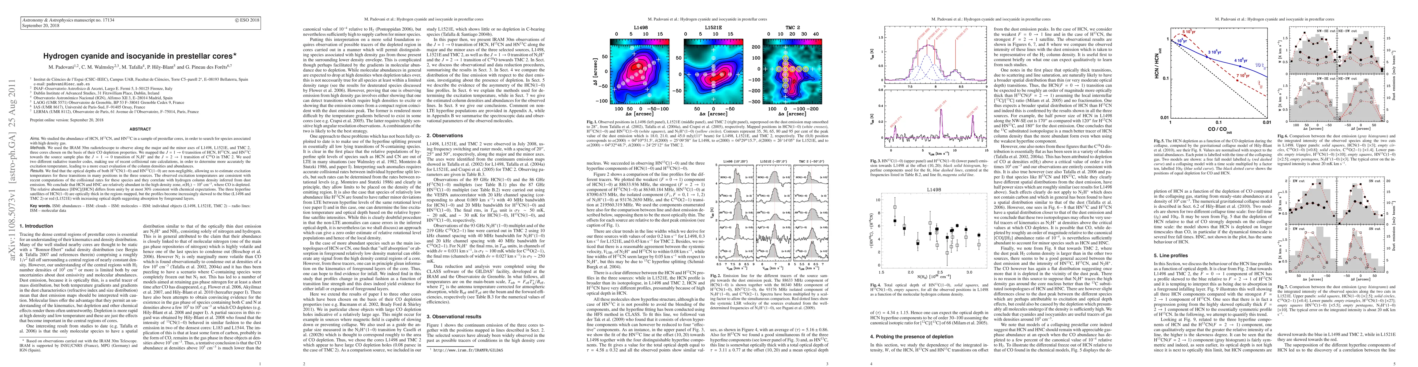 This study uses the IRAM 30m radiotelescope to examine hydrogen cyanide (HCN) and its isotopologues in prestellar cores L1498, L1521E, and TMC 2. By mapping the J=1-0 transition of HCN, H13CN, HN13C, N2H+, and C18O, researchers found non-negligible optical depths for H13CN(1-0) and HN13C(1-0), enabling accurate excitation temperature estimations. Results indicate that HCN and HNC are abundant in high-density zones (n(H2) ~ 10^5 cm-3) where CO is depleted, with [HNC]/[HCN] ratio varying by at most 30% from unity, aligning with chemical expectations. The hyperfine satellites of HCN(1-0) show skewed profiles due to optical depth and foreground absorption.