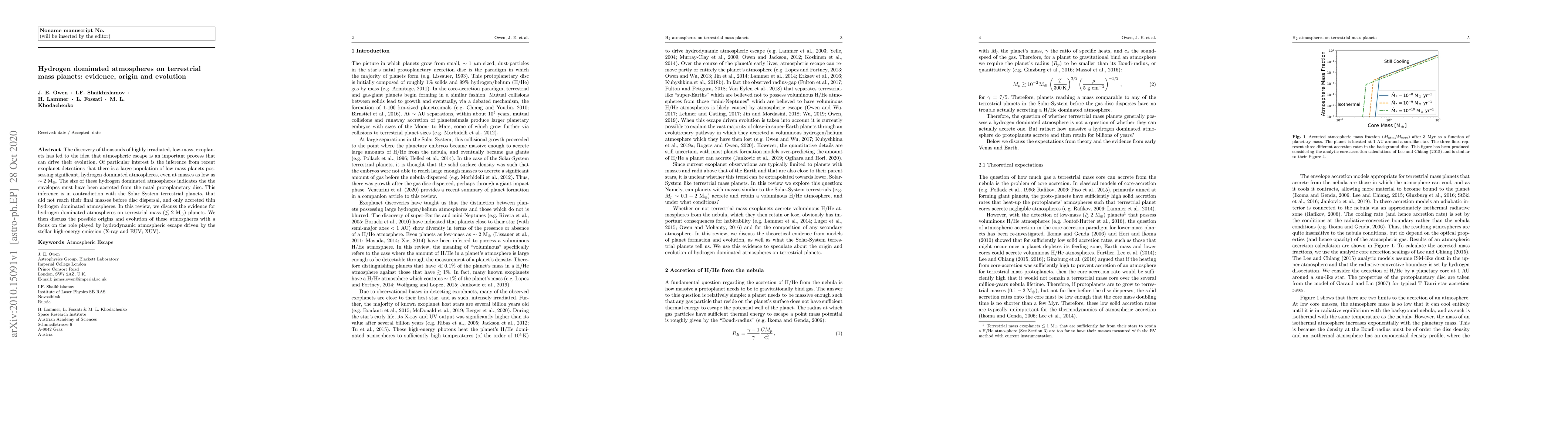 The discovery of thousands of highly irradiated, low-mass, exoplanets has led to the idea that atmospheric escape is an important process that can drive their evolution. Of particular interest is the inference from recent exoplanet detections that there is a large population of low mass planets possessing significant, hydrogen dominated atmospheres, even at masses as low as $\sim 2$~M$_\oplus$. The size of these hydrogen dominated atmospheres indicates the the envelopes must have been accreted from the natal protoplanetary disc. This inference is in contradiction with the Solar System terrestrial planets, that did not reach their final masses before disc dispersal, and only accreted thin hydrogen dominated atmospheres. In this review, we discuss the evidence for hydrogen dominated atmospheres on terrestrial mass ($\lesssim$ 2~M$_\oplus$) planets. We then discuss the possible origins and evolution of these atmospheres with a focus on the role played by hydrodynamic atmospheric escape driven by the stellar high-energy emission (X-ray and EUV; XUV).