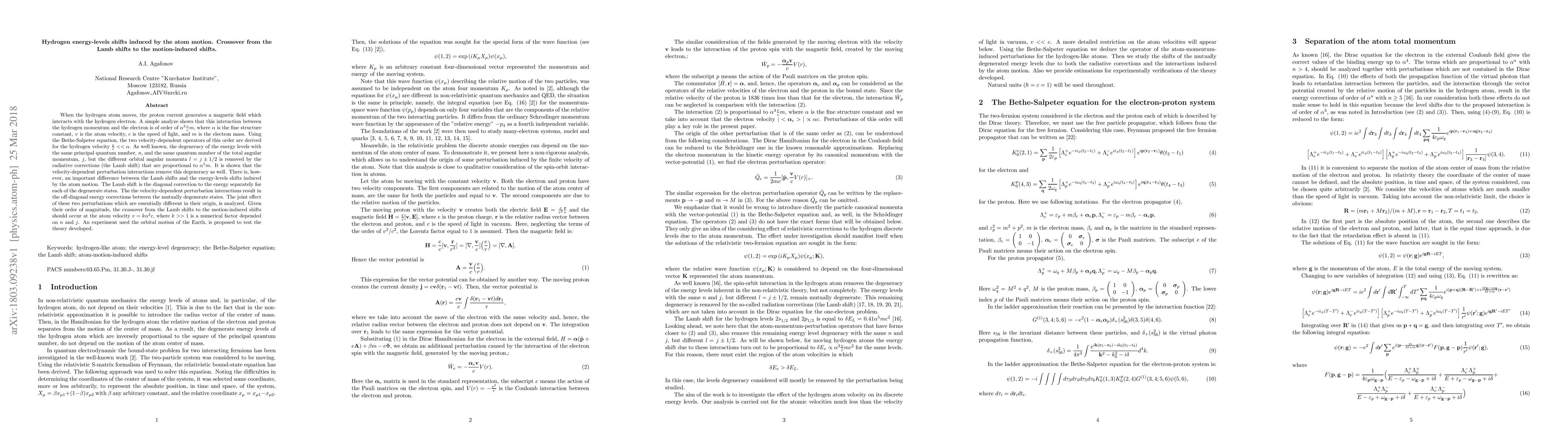 This research explores how the motion of a hydrogen atom causes energy level shifts due to magnetic interactions, transitioning from traditional Lamb shifts to motion-induced effects at higher velocities. It proposes an experiment using Earth's orbital motion to observe these velocity-dependent energy shifts.