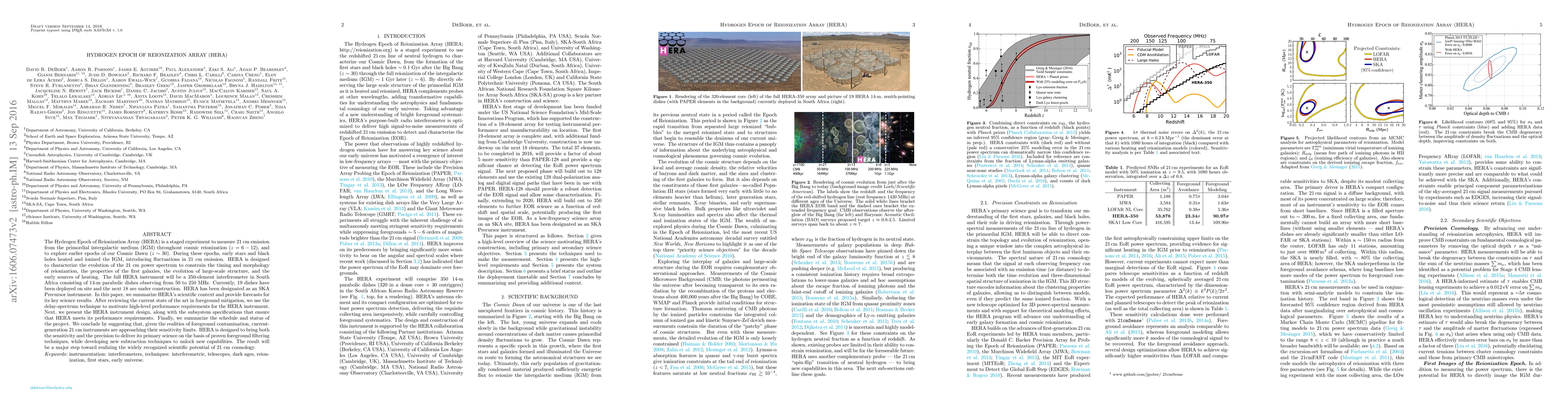 The Hydrogen Epoch of Reionization Array (HERA) aims to measure 21 cm emission to study cosmic reionization and the Cosmic Dawn, employing an interferometer in South Africa. The paper forecasts HERA's key science results and outlines its design, performance requirements, and current construction status, emphasizing its role in advancing 21 cm cosmology despite foreground contamination challenges.