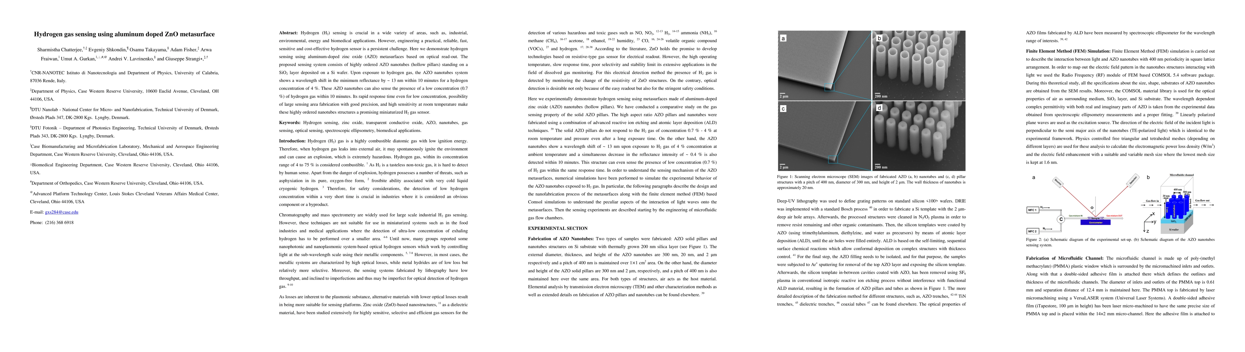 Hydrogen sensing is crucial in a wide variety of areas, such as industrial, environmental, energy and biomedical applications. However, engineering a practical, reliable, fast, sensitive and cost-effective hydrogen sensor, is a persistent challenge. Here we demonstrate hydrogen sensing using aluminum-doped zinc oxide (AZO) metasurfaces based on optical read-out. The proposed sensing system consists of highly ordered AZO nanotubes (hollow pillars) standing on a SiO2 layer deposited on a Si wafer. Upon exposure to hydrogen gas, the AZO nanotube system shows a wavelength shift in the minimum reflectance by 13 nm within 10 minutes for a hydrogen concentration of 4%. These AZO nanotubes can also sense the presence of a low concentration (0.7 %) of hydrogen gas within 10 minutes. Its rapid response time even for low concentration, the possibility of large sensing area fabrication with good precision, and high sensitivity at room temperature make these highly ordered nanotube structures a promising miniaturized H2 gas sensor.
