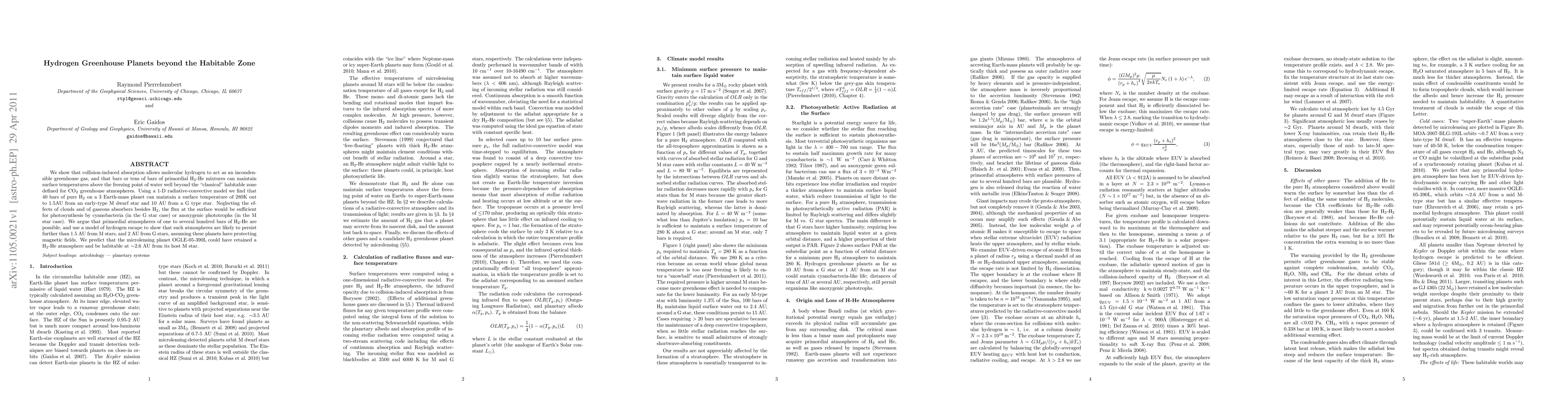 This paper demonstrates that hydrogen can act as an effective greenhouse gas through collision-induced absorption, enabling planets beyond the traditional habitable zone to maintain temperatures conducive to liquid water. It suggests that high-pressure H2-He atmospheres could sustain photosynthesis and potentially support life.