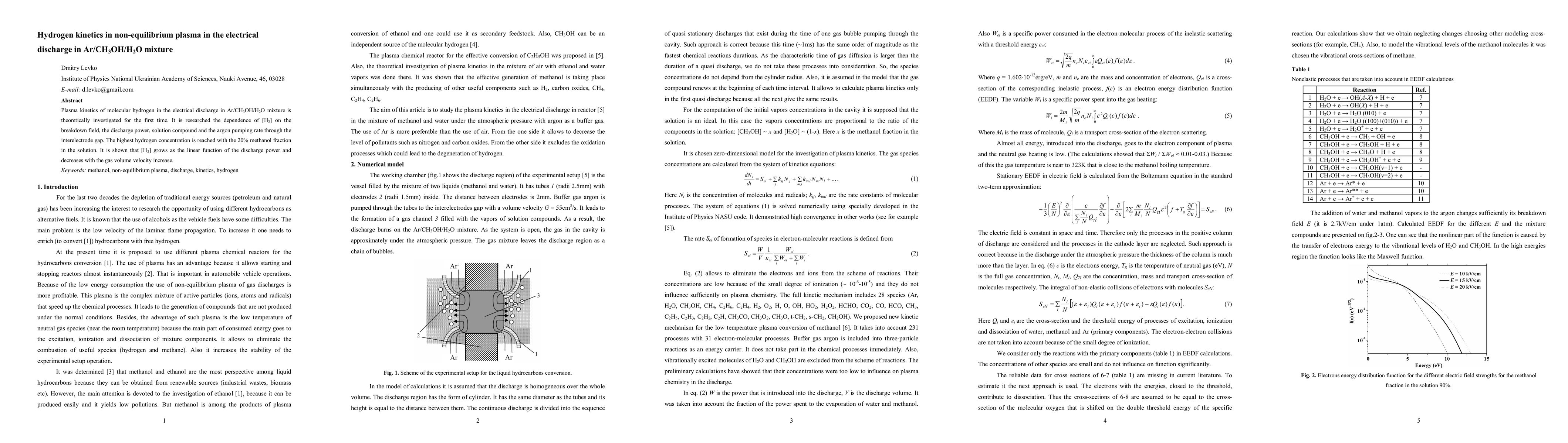 Plasma kinetics of molecular hydrogen in the electrical discharge in Ar/CH3OH/H2O mixture is theoretically investigated for the first time. It is researched the dependence of [H2] on the breakdown field, the discharge power, solution compound and the argon pumping rate through the interelectrode gap. The highest hydrogen concentration is reached with the 20% methanol fraction in the solution. It is shown that [H2] grows as the linear function of the discharge power and decreases with the gas volume velocity increase.