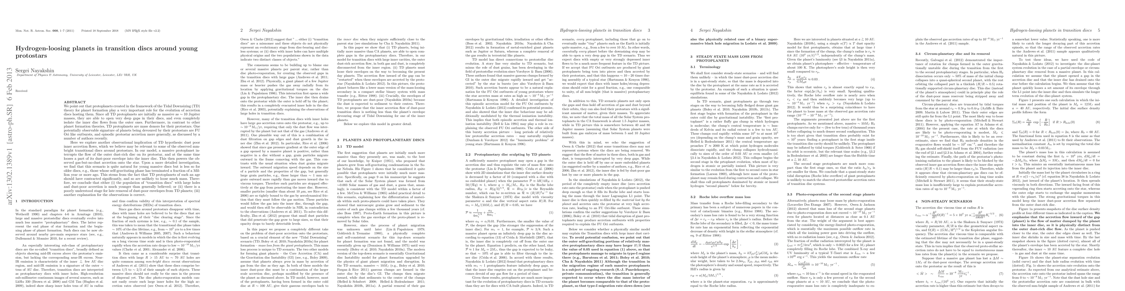 We point out that protoplanets created in the framework of the Tidal Downsizing (TD) theory for planet formation play a very important role for the evolution of accretion discs hosting them. Since all TD protoplanets are initially as massive as $\sim 10$ Jupiter masses, they are able to open very deep gaps in their discs, and even completely isolate the inner disc flows from the outer ones. Furthermore, in contrast to other planet formation theories, TD protoplanets are mass donors for their protostars. One potentially observable signature of planets being devoured by their protostars are FU Ori like outbursts, and episodic protostar accretion more generally, as discussed by a number of authors recently. Here we explore another observational implication of TD hypothesis: dust poor inner accretion flows, which we believe may be relevant to some of the observed mm-bright transitional discs around protostars. In our model, a massive protoplanet interrupts the flow of the outer dust-rich disc on its protostar, and at the same time looses a part of its dust-poor envelope into the inner disc. This then powers the observed gas-but-no-dust accretion onto the star. Upon a more detailed investigation, we find that this scenario is quite natural for young massive discs but is less so for older discs, e.g., those whose self-gravitating phase has terminated a fraction of a Million year or more ago. This stems from the fact that TD protoplanets of such an age should have contracted significantly, and so are unlikely to loose much mass. Therefore, we conclude that either (i) the population of "transition discs" with large holes and dust-poor accretion is much younger than generally believed; or (ii) there is a poorly understood stage for late removal of dust-poor envelopes from TD planets; (iii) another explanation for the observations is correct.