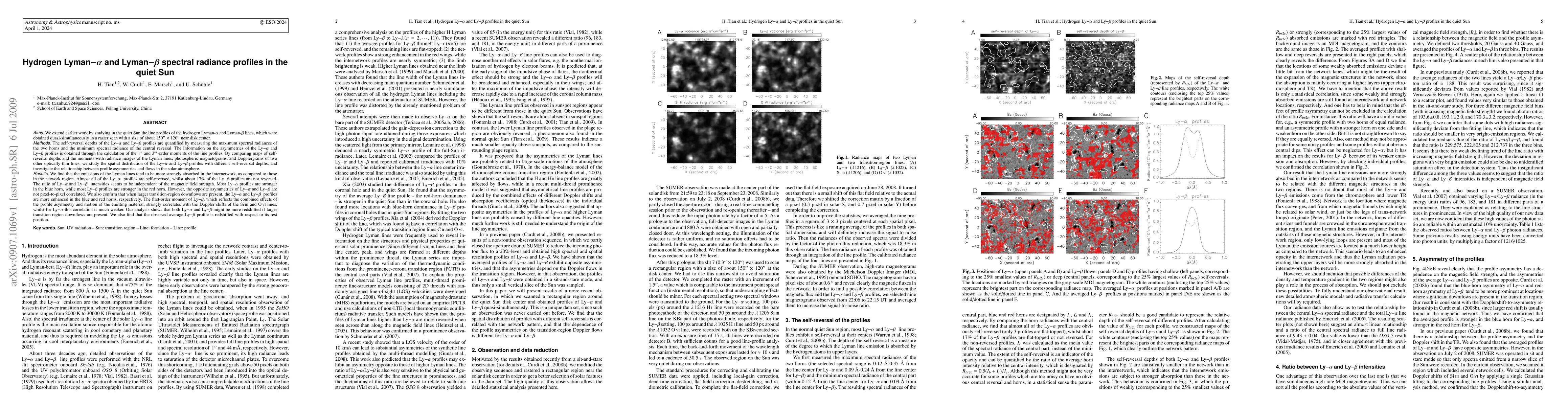 This study investigates the spectral radiance profiles of hydrogen Lyman-alpha and Lyman-beta lines in the quiet Sun, revealing that Lyman-alpha emissions are more strongly absorbed in internetwork regions compared to network regions. The analysis shows that while most Lyman-alpha profiles are self-reversed, only about 17% of Lyman-beta profiles exhibit this feature, and the asymmetry between the two lines does not correlate pixel-to-pixel.