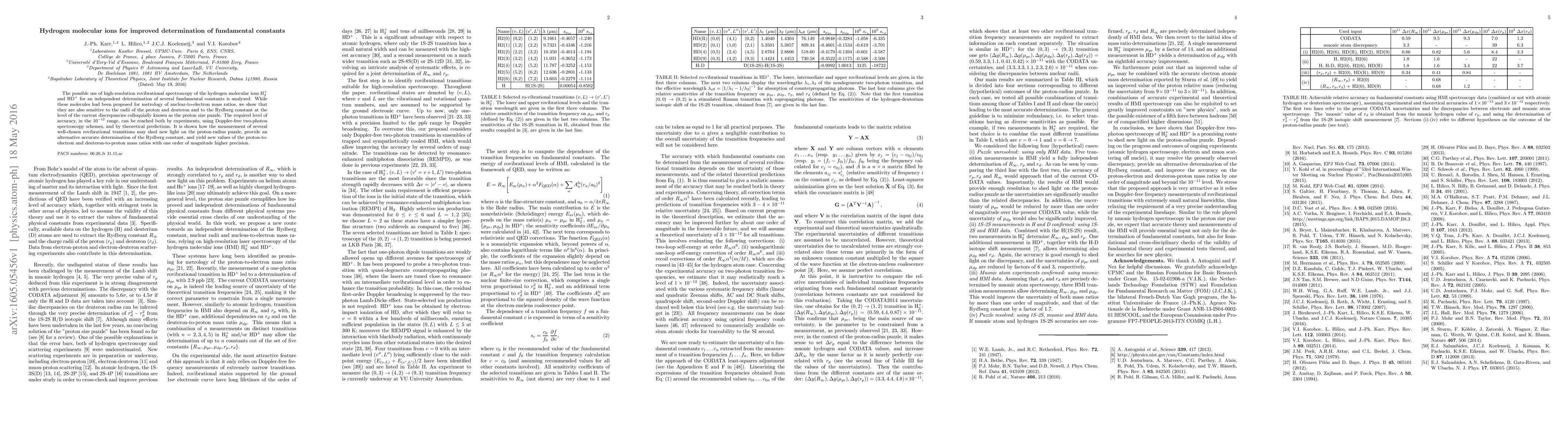 V. I. Korobov, S. Schiller, J. -Ph Karr et al.