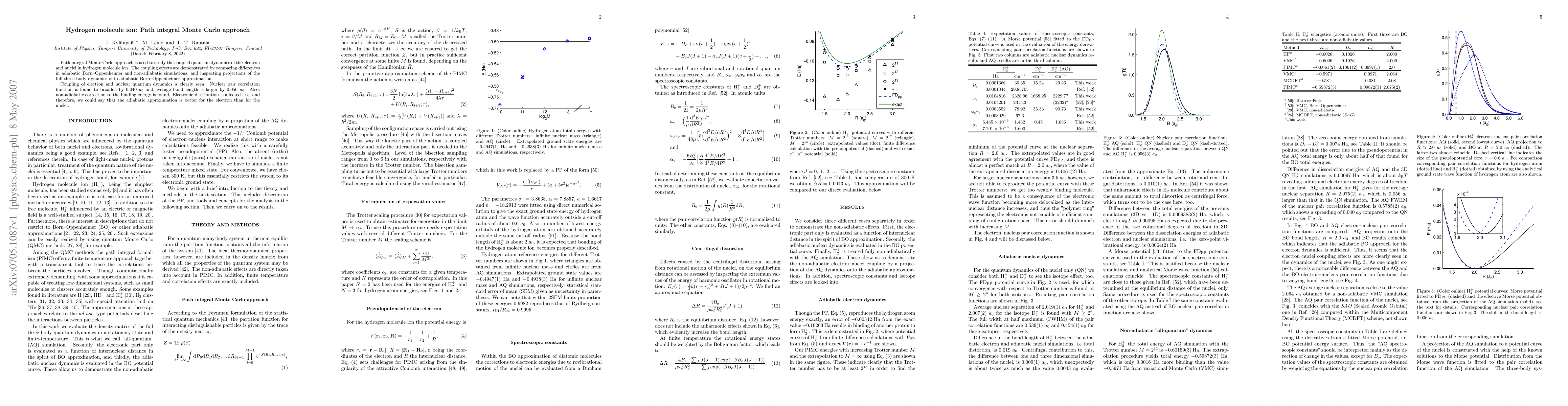 This study employs Path Integral Monte Carlo to explore the quantum dynamics of the electron and nuclei in the hydrogen molecule ion, revealing significant coupling effects between them. The nuclear pair correlation function broadens and the average bond length increases, while the electronic distribution remains relatively unaffected, indicating better adiabatic approximation for electrons compared to nuclei.