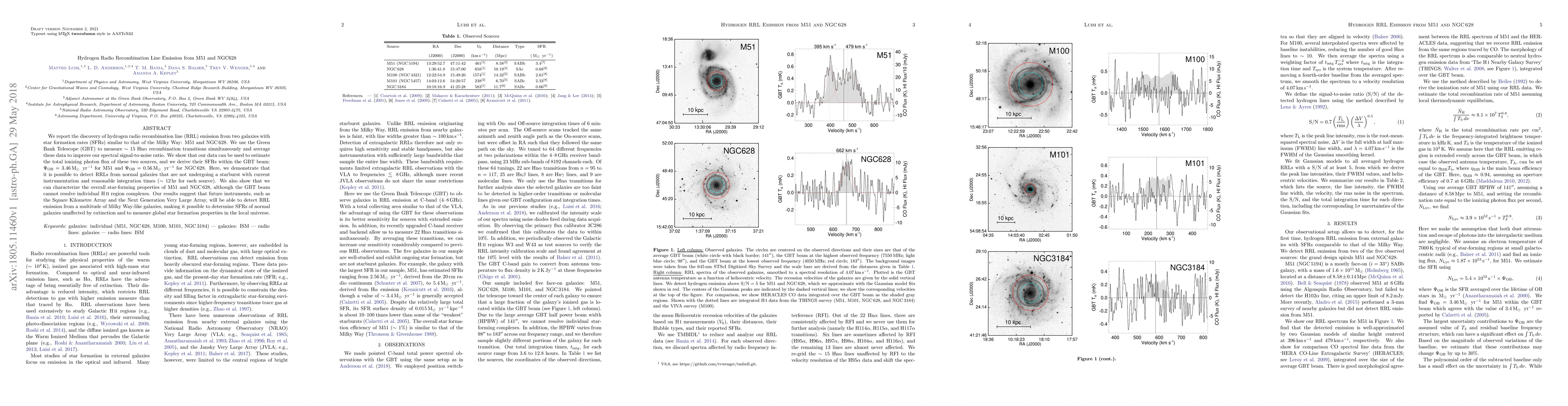 We report the discovery of hydrogen radio recombination line (RRL) emission from two galaxies with star formation rates (SFRs) similar to that of the Milky Way: M51 and NGC628. We use the Green Bank Telescope (GBT) to measure $\sim$15 Hn$\alpha$ recombination transitions simultaneously and average these data to improve our spectral signal-to-noise ratio. We show that our data can be used to estimate the total ionizing photon flux of these two sources, and we derive their SFRs within the GBT beam: $\Psi_{\rm OB} = 3.46$ M$_{\odot}$ yr$^{-1}$ for M51 and $\Psi_{\rm OB} = 0.56$ M$_{\odot}$ yr$^{-1}$ for NGC628. Here, we demonstrate that it is possible to detect RRLs from normal galaxies that are not undergoing a starburst with current instrumentation and reasonable integration times ($\sim$12 hr for each source). We also show that we can characterize the overall star-forming properties of M51 and NGC628, although the GBT beam cannot resolve individual HII region complexes. Our results suggest that future instruments, such as the Square Kilometre Array and the Next Generation Very Large Array, will be able to detect RRL emission from a multitude of Milky Way-like galaxies, making it possible to determine SFRs of normal galaxies unaffected by extinction and to measure global star formation properties in the local universe.