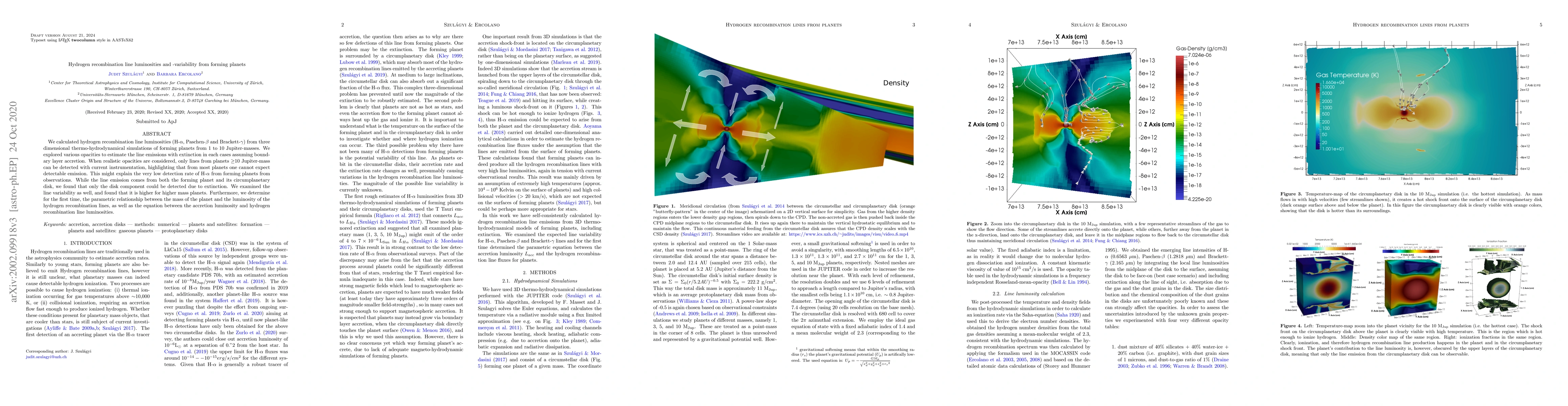 This study calculates hydrogen recombination line luminosities from forming planets using 3D simulations, finding that only planets with masses ≥10 Jupiter masses show detectable emissions. The research also reveals higher variability in line emissions for more massive planets and establishes a relationship between planet mass and line luminosity.