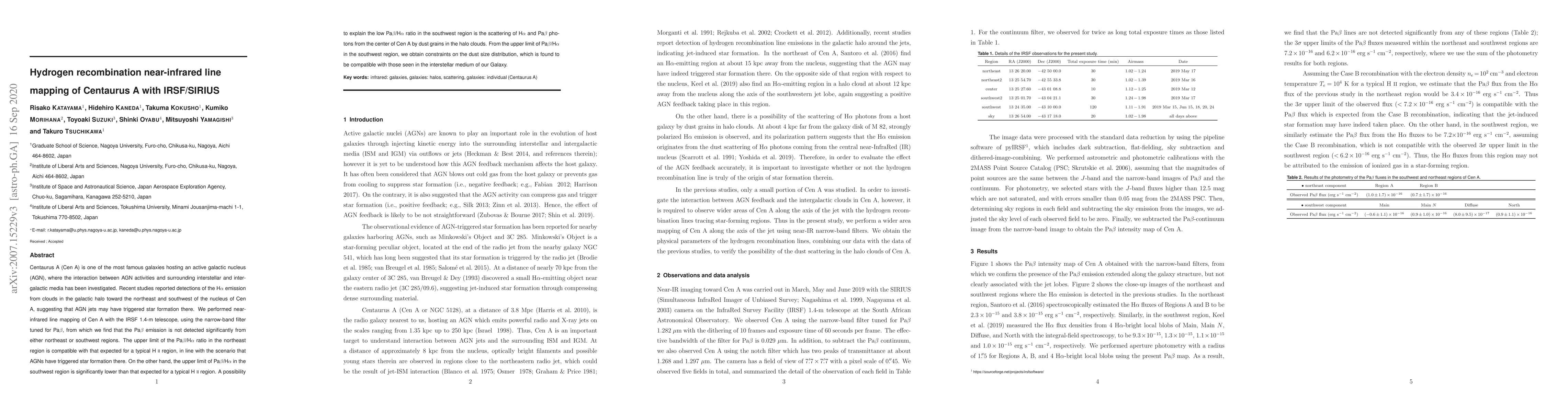 Centaurus A (Cen A) is one of the most famous galaxies hosting an active galactic nucleus (AGN), where the interaction between AGN activities and surrounding interstellar and intergalactic media has been investigated. Recent studies reported detections of the H{\alpha} emission from clouds in the galactic halo toward the northeast and southwest of the nucleus of Cen A, suggesting that AGN jets may have triggered star formation there. We performed near-infrared line mapping of Cen A with the IRSF 1.4-m telescope, using the narrow-band filter tuned for Pa{\beta}, from which we find that the Pa{\beta} emission is not detected significantly from either northeast or southwest regions. The upper limit of the Pa{\beta}/H{\alpha} ratio in the northeast region is compatible with that expected for a typical HII region, in line with the scenario that AGNs have triggered star formation there. On the other hand, the upper limit of Pa{\beta}/H{\alpha} in the southwest region is significantly lower than that expected for a typical HII region. A possibility to explain the low Pa{\beta}/H{\alpha} ratio in the southwest region is the scattering of H{\alpha} and Pa{\beta} photons from the center of Cen A by dust grains in the halo clouds. From the upper limit of Pa{\beta}/H{\alpha} in the southwest region, we obtain constraints on the dust size distribution, which is found to be compatible with those seen in the interstellar medium of our Galaxy.