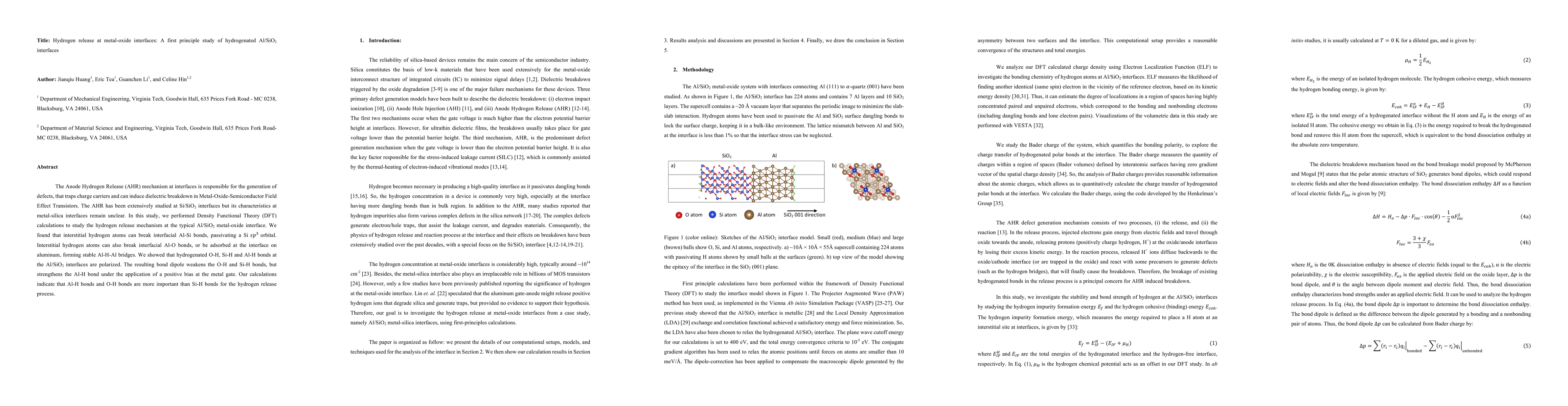 The paper presents a detailed first-principle study of hydrogenated Al/SiO2 interfaces, revealing the role of various hydrogenated bonds in the hydrogen release process.