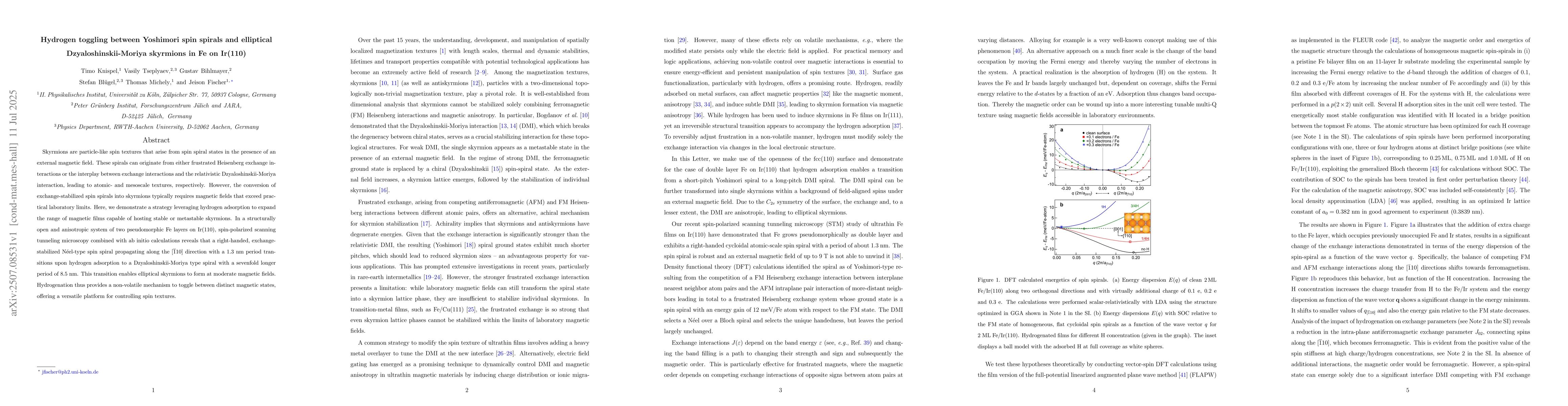 Skyrmions are particle-like spin textures that arise from spin spiral states in the presence of an external magnetic field. These spirals can originate from either frustrated Heisenberg exchange interactions or the interplay between exchange interactions and the relativistic Dzyaloshinskii-Moriya interaction, leading to atomic- and mesoscale textures, respectively. However, the conversion of exchange-stabilized spin spirals into skyrmions typically requires magnetic fields that exceed practical laboratory limits. Here, we demonstrate a strategy leveraging hydrogen adsorption to expand the range of magnetic films capable of hosting stable or metastable skyrmions. In a structurally open and anisotropic system of two pseudomorphic Fe layers on Ir(110), spin-polarized scanning tunneling microscopy combined with ab initio calculations reveals that a right-handed, exchange-stabilized N\'eel-type spin spiral propagating along the [$\overline{1}10$] direction with a $1.3$~nm period transitions upon hydrogen adsorption to a Dzyaloshinskii-Moriya type spiral with a sevenfold longer period of $8.5$~nm. This transition enables elliptical skyrmions to form at moderate magnetic fields. Hydrogenation thus provides a non-volatile mechanism to toggle between distinct magnetic states, offering a versatile platform for controlling spin textures.