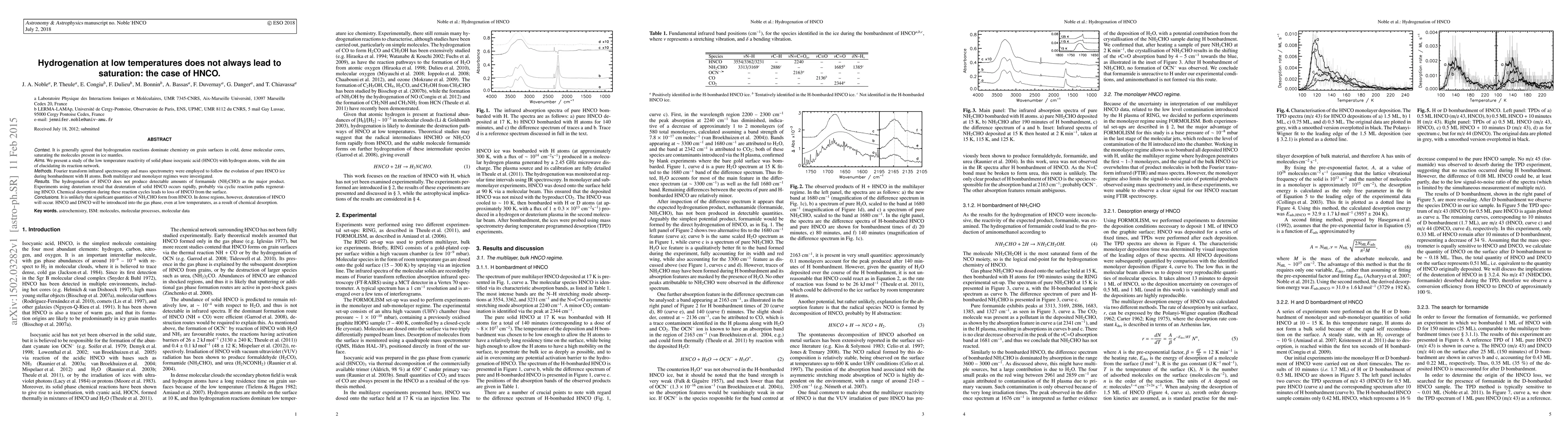Low-temperature hydrogenation of isocyanic acid (HNCO) does not produce detectable formamide; instead, it leads to rapid deuteration and chemical desorption, introducing HNCO and deuterated compounds into the gas phase.