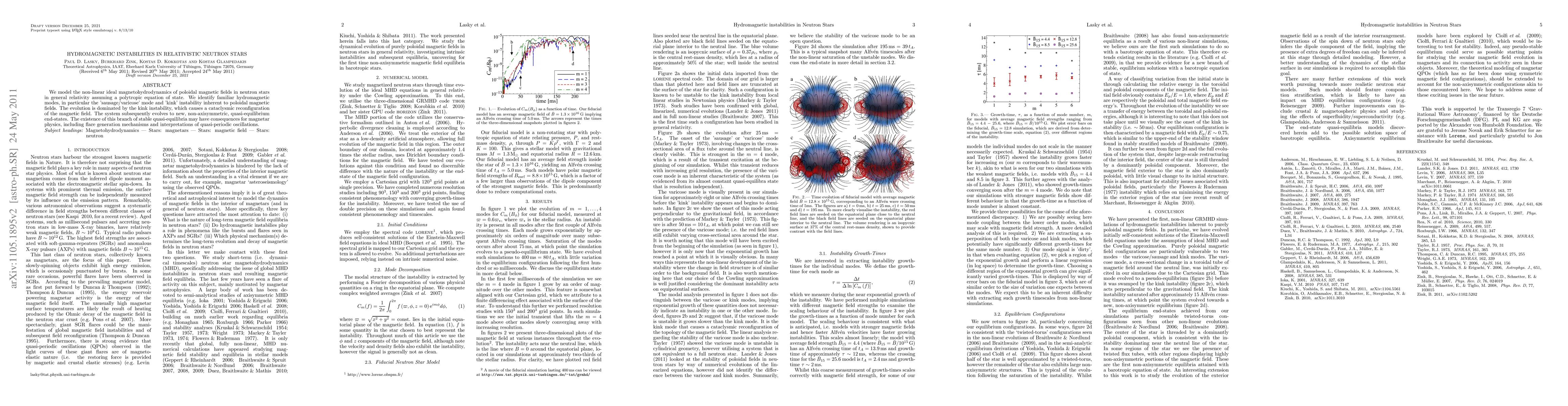 This paper models the non-linear magnetohydrodynamics of neutron stars' poloidal magnetic fields, identifying the kink instability that leads to magnetic field reconfiguration. The study suggests that stable quasi-equilibrium states may impact magnetar physics, including flare generation and quasi-periodic oscillations.