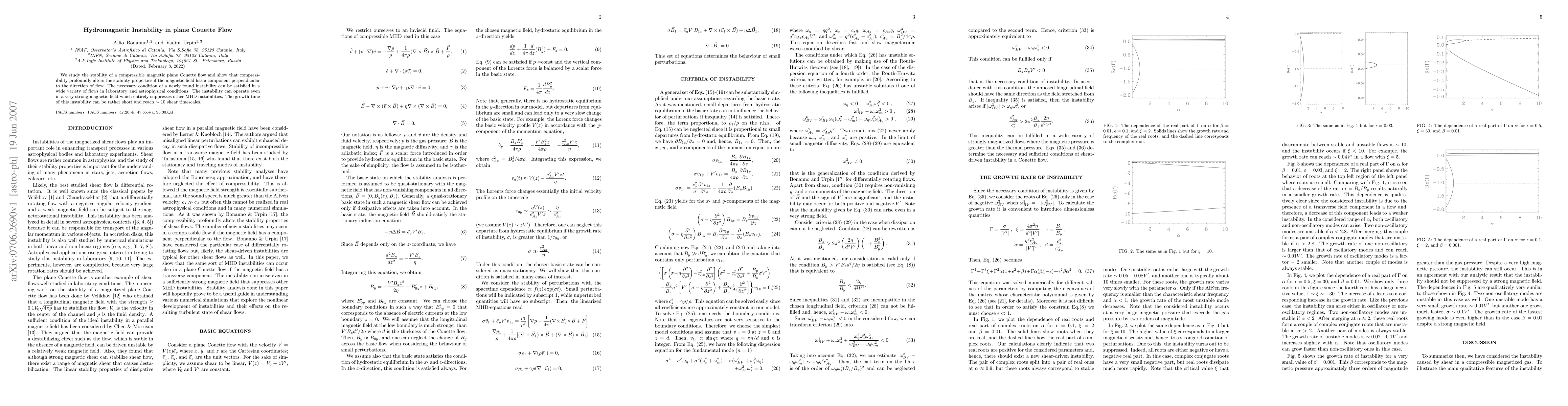 This paper investigates the stability of compressible magnetic plane Couette flow, revealing a new hydromagnetic instability driven by compressibility when a perpendicular magnetic field component is present. This instability can occur even in strong magnetic fields, with a growth time of approximately 10 shear timescales.