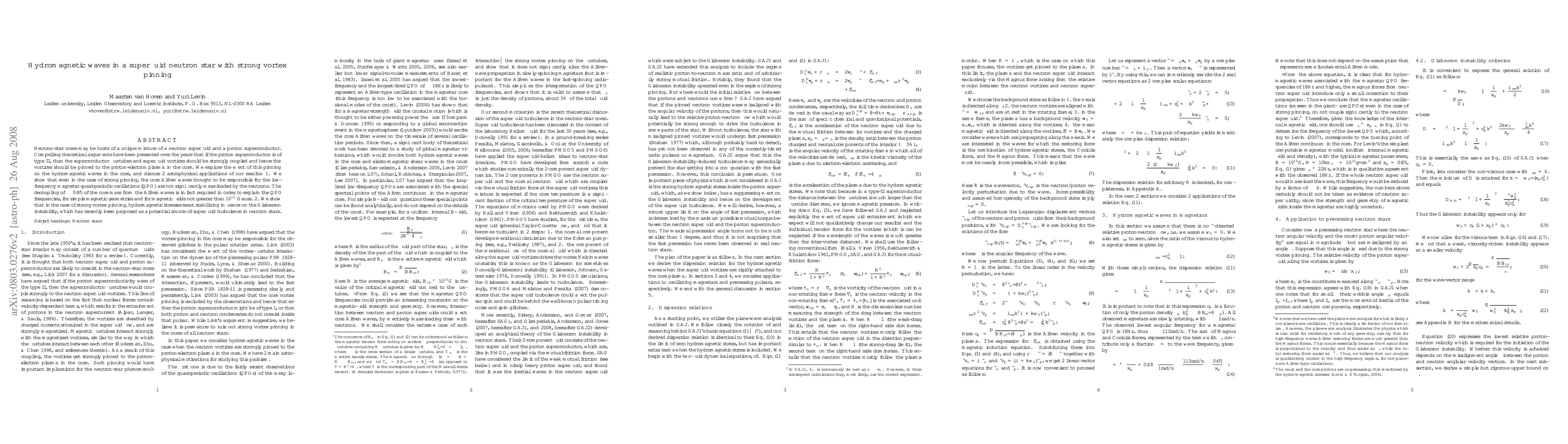 Neutron-star cores may be hosts of a unique mixture of a neutron superfluid and a proton superconductor. Compelling theoretical arguments have been presented over the years that if the proton superconductor is of type II, than the superconductor fluxtubes and superfluid vortices should be strongly coupled and hence the vortices should be pinned to the proton-electron plasma in the core. We explore the effect of this pinning on the hydromagnetic waves in the core, and discuss 2 astrophysical applications of our results: 1. We show that even in the case of strong pinning, the core Alfven waves thought to be responsible for the low-frequency magnetar quasi-periodic oscillations (QPO) are not significantly mass-loaded by the neutrons. The decoupling of about 0.95 of the core mass from the Alfven waves is in fact required in order to explain the QPO frequencies, for simple magnetic geometries and for magnetic fields not greater than 10^{15} Gauss. 2. We show that in the case of strong vortex pinning, hydromagnetic stresses exert stabilizing influence on the Glaberson instability, which has recently been proposed as a potential source of superfluid turbulence in neutron stars.
