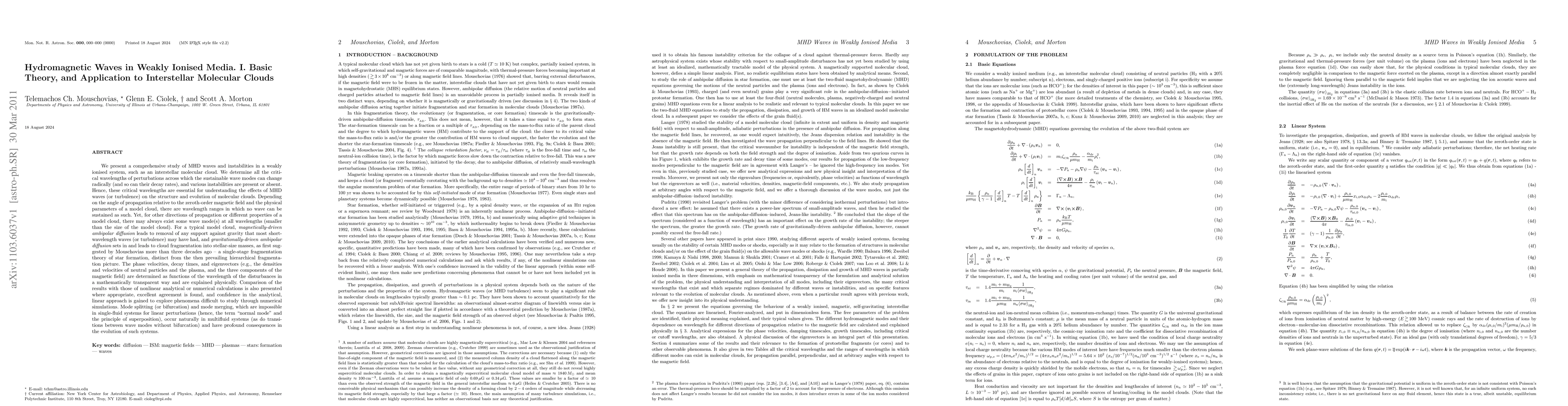 We present a comprehensive study of MHD waves and instabilities in a weakly ionised system, e.g., an interstellar molecular cloud. We determine all the critical wavelengths of perturbations across which the sustainable wave modes can change radically (and so can their decay rates), and various instabilities are present or absent. These critical wavelengths are essential for understanding the effects of MHD waves (or turbulence) on the structure and evolution of molecular clouds. Depending on the angle of propagation relative to the magnetic field and the physical parameters of a cloud, there are wavelength ranges in which no wave can be sustained as such. Yet, for other directions of propagation or different properties of a model cloud, there may exist some wave mode(s) at all wavelengths. For a typical cloud, magnetically-driven ambipolar diffusion leads to removal of any support against gravity that most short-wavelength waves (or turbulence) may have had, and gravitationally-driven ambipolar diffusion sets in and leads to cloud fragmentation into stellar-size masses, as first suggested by Mouschovias three decades ago -- a single-stage fragmentation theory of star formation, distinct from the hierarchical fragmentation picture. Phase velocities, decay times, and eigenvectors (the densities and velocities of neutral particles and the plasma, and components of the magnetic field) are determined as functions of the wavelength of the disturbances and are explained physically. Comparison of the results with nonlinear analytical or numerical calculations is also presented, excellent agreement is found, and confidence in the analytical, linear approach is gained to explore phenomena difficult to study through numerical simulations. Mode splitting and mode merging, which are impossible in single-fluid systems for linear perturbations, occur naturally in multifluid systems.