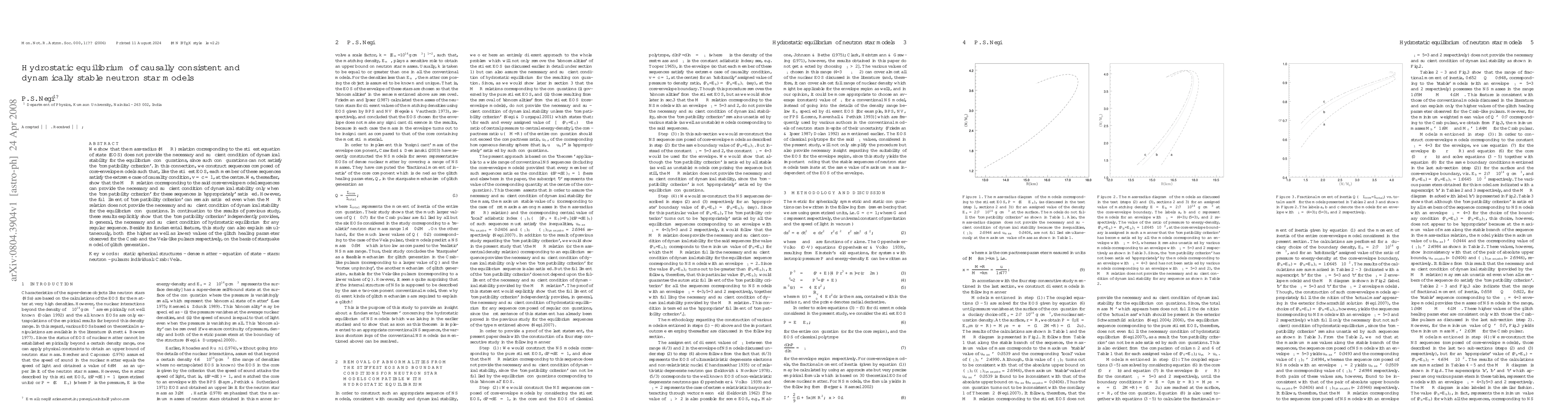 This study finds that the mass-radius relation of neutron star models does not guarantee dynamical stability, and instead, a compatibility criterion provides necessary and sufficient conditions for hydrostatic equilibrium, explaining glitch healing in pulsars.