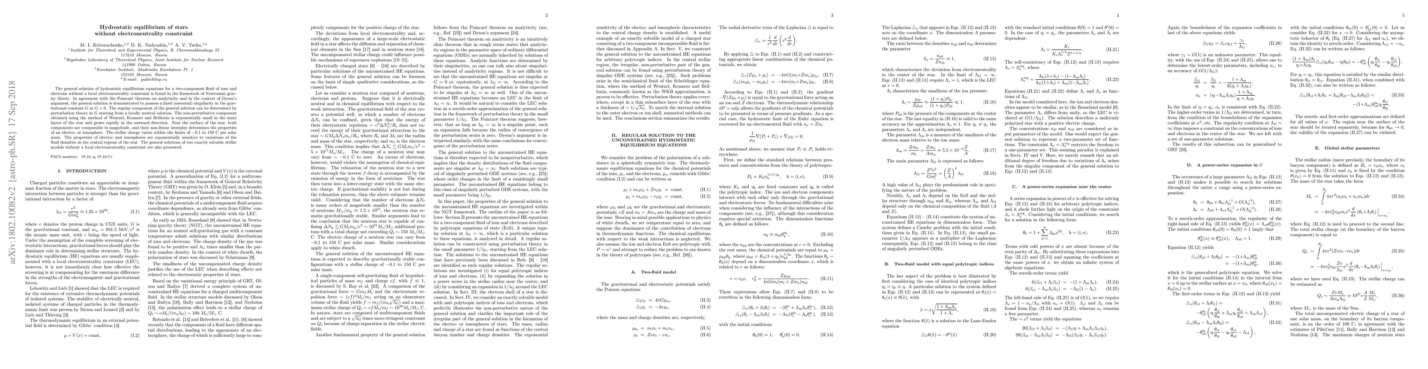The general solution of hydrostatic equilibrium equations for a two-component fluid of ions and electrons without a local electroneutrality constraint is found in the framework of Newtonian gravity theory. In agreement with the Poincar\'e theorem on analyticity and in the context of Dyson's argument, the general solution is demonstrated to possess a fixed (essential) singularity in the gravitational constant $G$ at $ G = 0 $. The regular component of the general solution can be determined by perturbation theory in $G$ starting from a locally neutral solution. The non-perturbative component obtained using the method of Wentzel, Kramers and Brillouin is exponentially small in the inner layers of the star and grows rapidly in the outward direction. Near the surface of the star, both components are comparable in magnitude, and their non-linear interplay determines the properties of an electro- or ionosphere. The stellar charge varies within the limits of $- 0.1 $ to $150$ C per solar mass. The properties of electro- and ionospheres are exponentially sensitive to variations of the fluid densities in the central regions of the star. The general solutions of two exactly solvable stellar models without a local electroneutrality constraint are also presented.