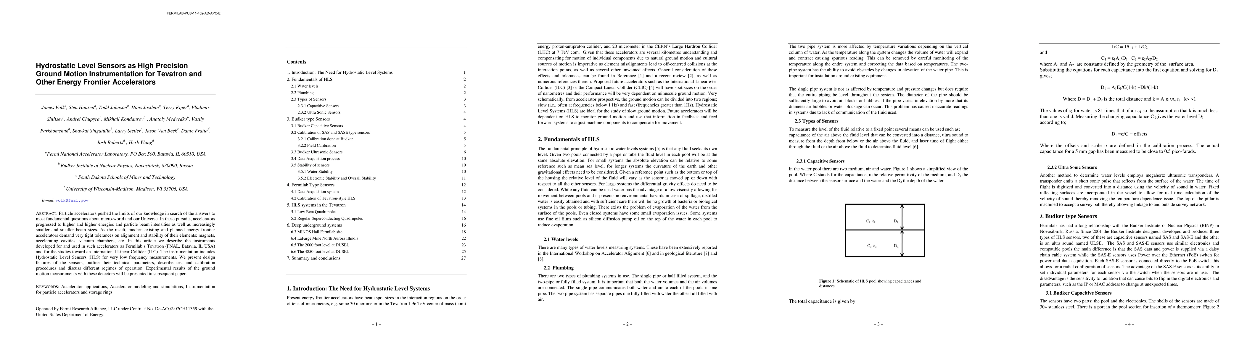 Researchers developed Hydrostatic Level Sensors to measure ground motion with high precision at particle accelerators like Tevatron, enabling tight tolerances on alignment and stability for future energy frontier accelerators.