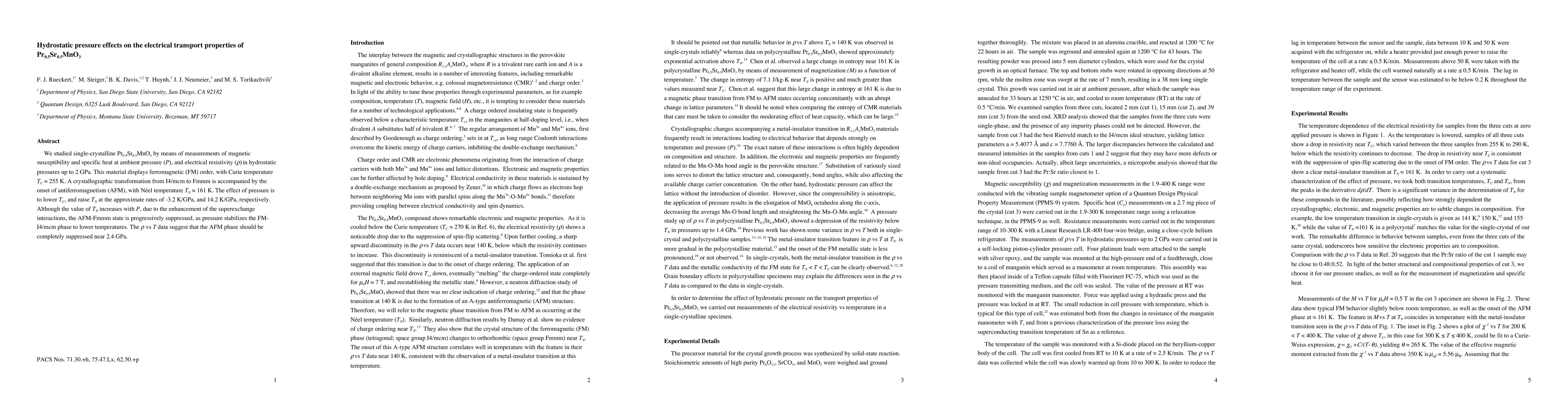 Researchers studied the effects of hydrostatic pressure on a specific material, finding that it lowers the Curie temperature but raises the Neel temperature, ultimately suppressing antiferromagnetism at high pressures.