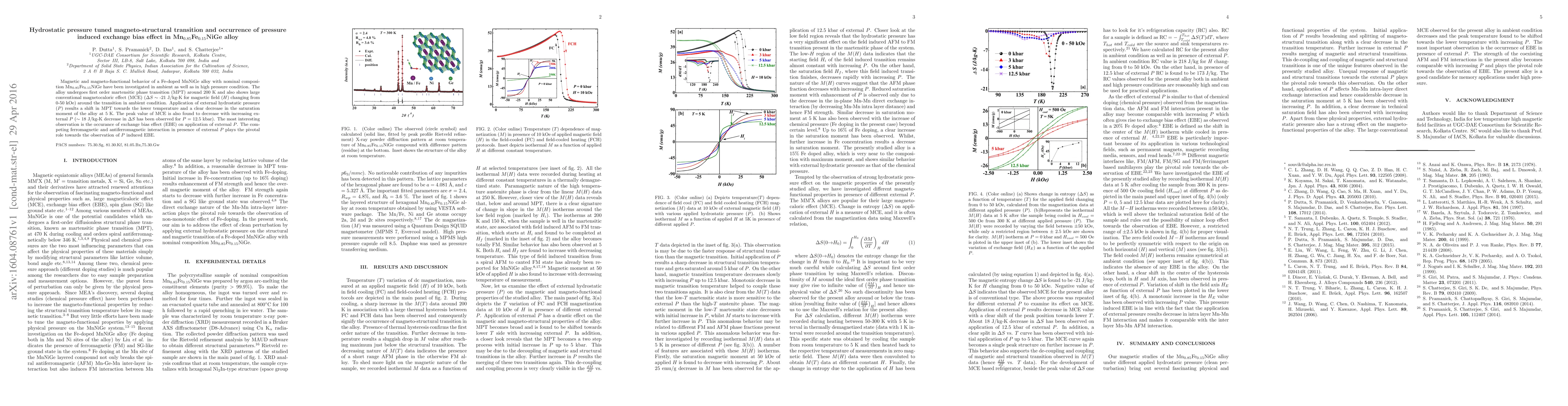 This study investigates the magneto-structural behavior of Mn$_{0.85}$Fe$_{0.15}$NiGe alloy under ambient and high pressure conditions, revealing a first-order martensitic phase transition and a significant magnetocaloric effect. Hydrostatic pressure induces an exchange bias effect, highlighting the interplay between competing magnetic interactions under pressure.