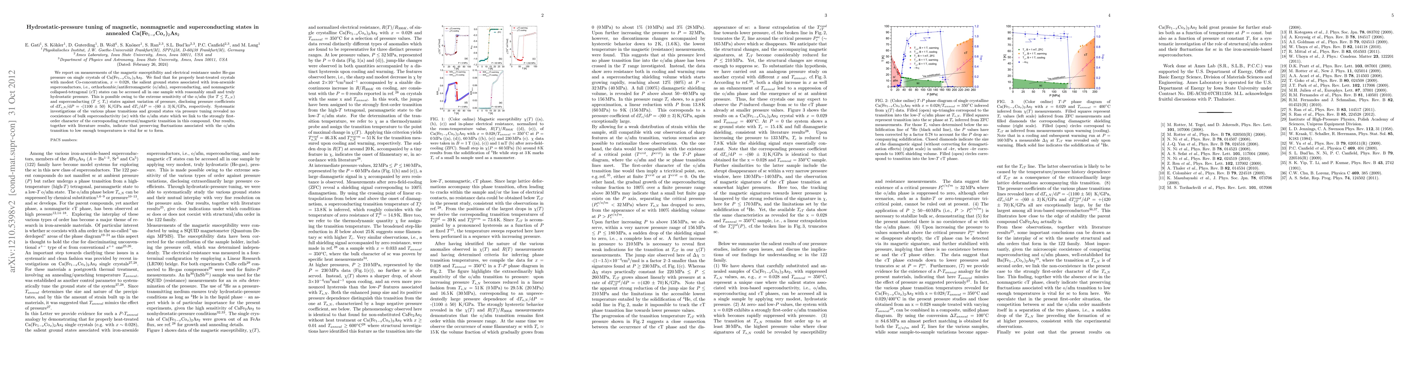 This study shows that applying hydrostatic pressure to Ca(Fe$_{1-x}$Co$_x$)$_2$As$_2$ crystals can switch between magnetic, nonmagnetic, and superconducting states, revealing how pressure influences their phase behavior. The findings highlight the importance of magnetic fluctuations for the emergence of superconductivity in these materials.