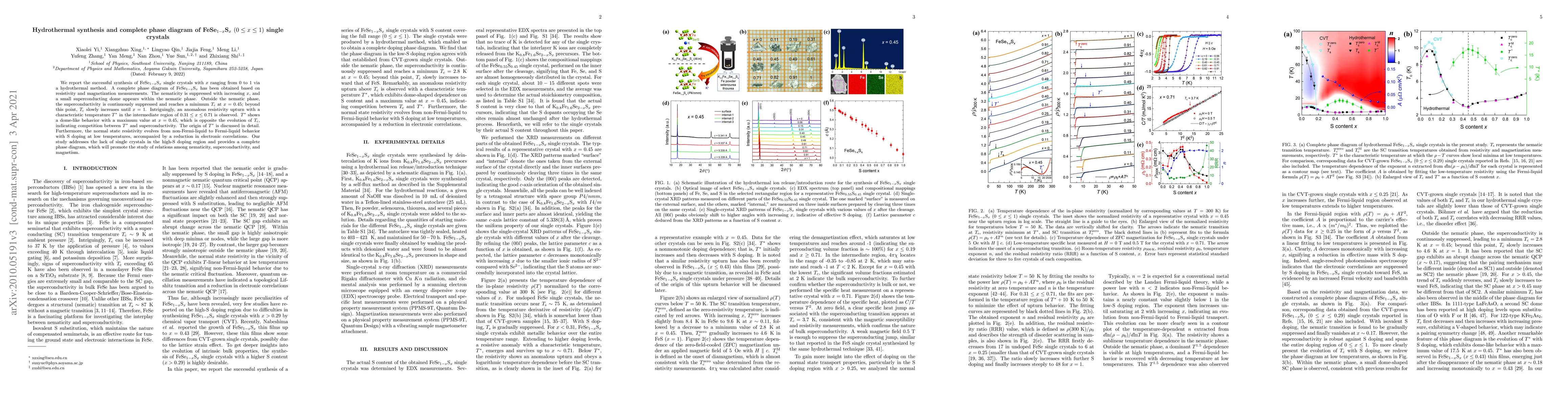 This paper reports the hydrothermal synthesis of FeSe$_{1-x}$S$_{x}$ single crystals and presents a complete phase diagram based on resistivity and magnetization measurements. The study reveals a suppression of nematicity and a small superconducting dome with increasing sulfur doping, while superconductivity is minimized at $x$ = 0.45 and then increases towards $x$ = 1.