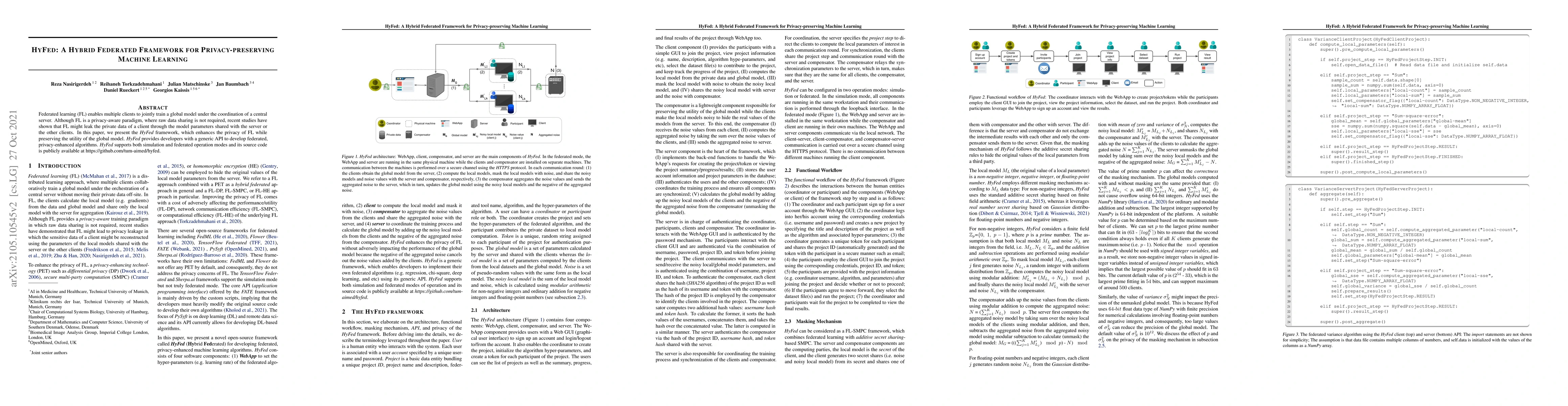 HyFed is a hybrid federated framework designed to enhance privacy in federated learning while maintaining model utility. It offers a generic API for developing privacy-preserving algorithms and supports both simulation and real-world federated operations.