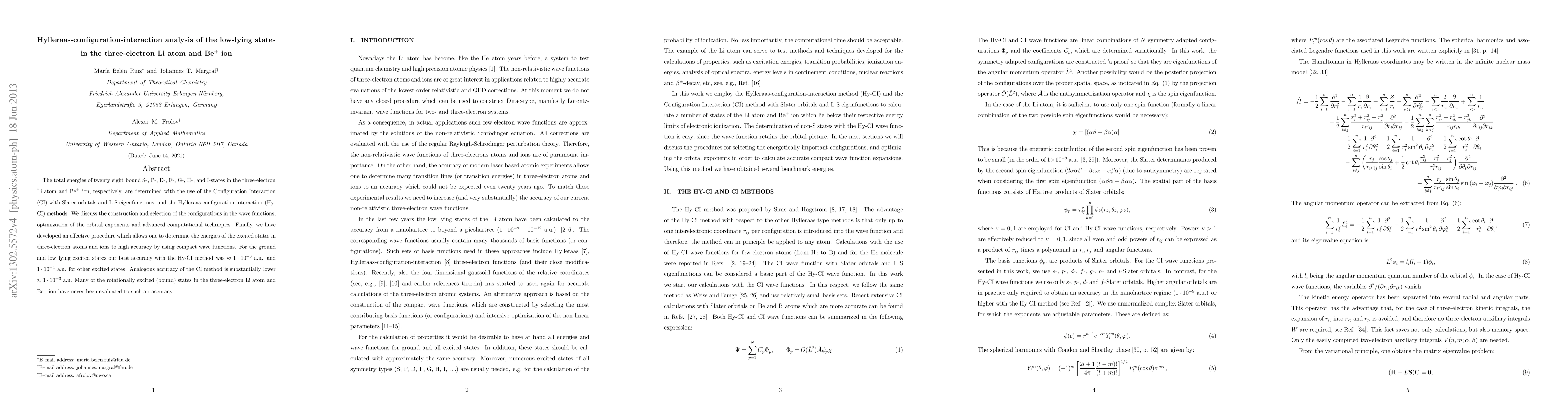This paper presents a detailed Hylleraas-configuration-interaction analysis of the low-lying states in the three-electron Li atom and Be+ ion, achieving high accuracy in energy determinations using advanced computational techniques and compact wave functions. The Hylleraas-CI method shows superior accuracy compared to traditional CI methods.