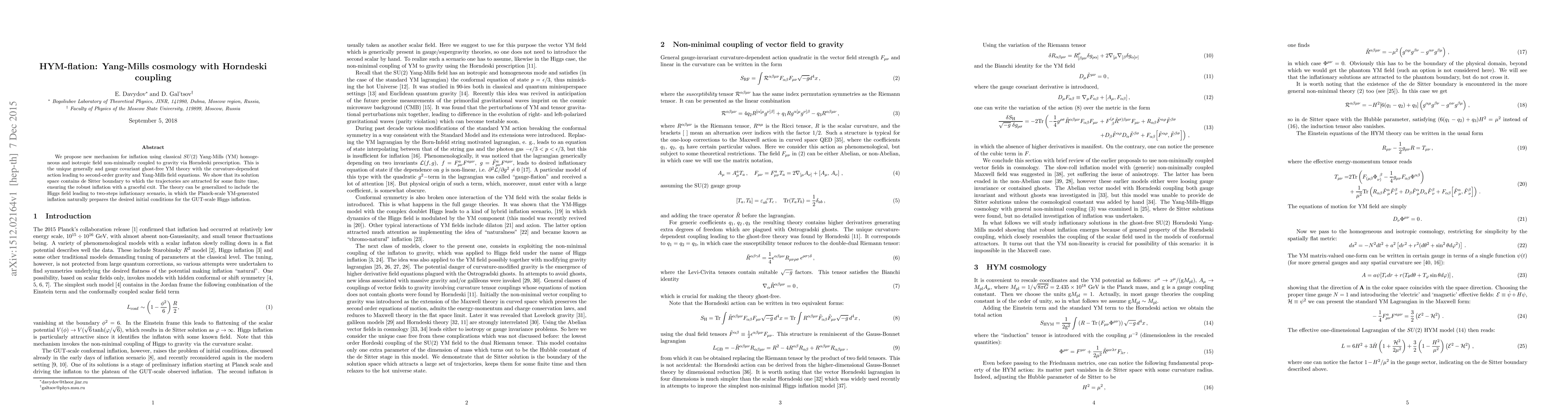 This paper proposes a novel mechanism for inflation based on classical SU(2) Yang-Mills fields coupled to gravity via Horndeski prescription, ensuring robust inflation with a graceful exit. The theory can be extended to include the Higgs field, leading to a two-step inflationary scenario where YM-generated inflation sets up conditions for subsequent GUT-scale Higgs inflation.